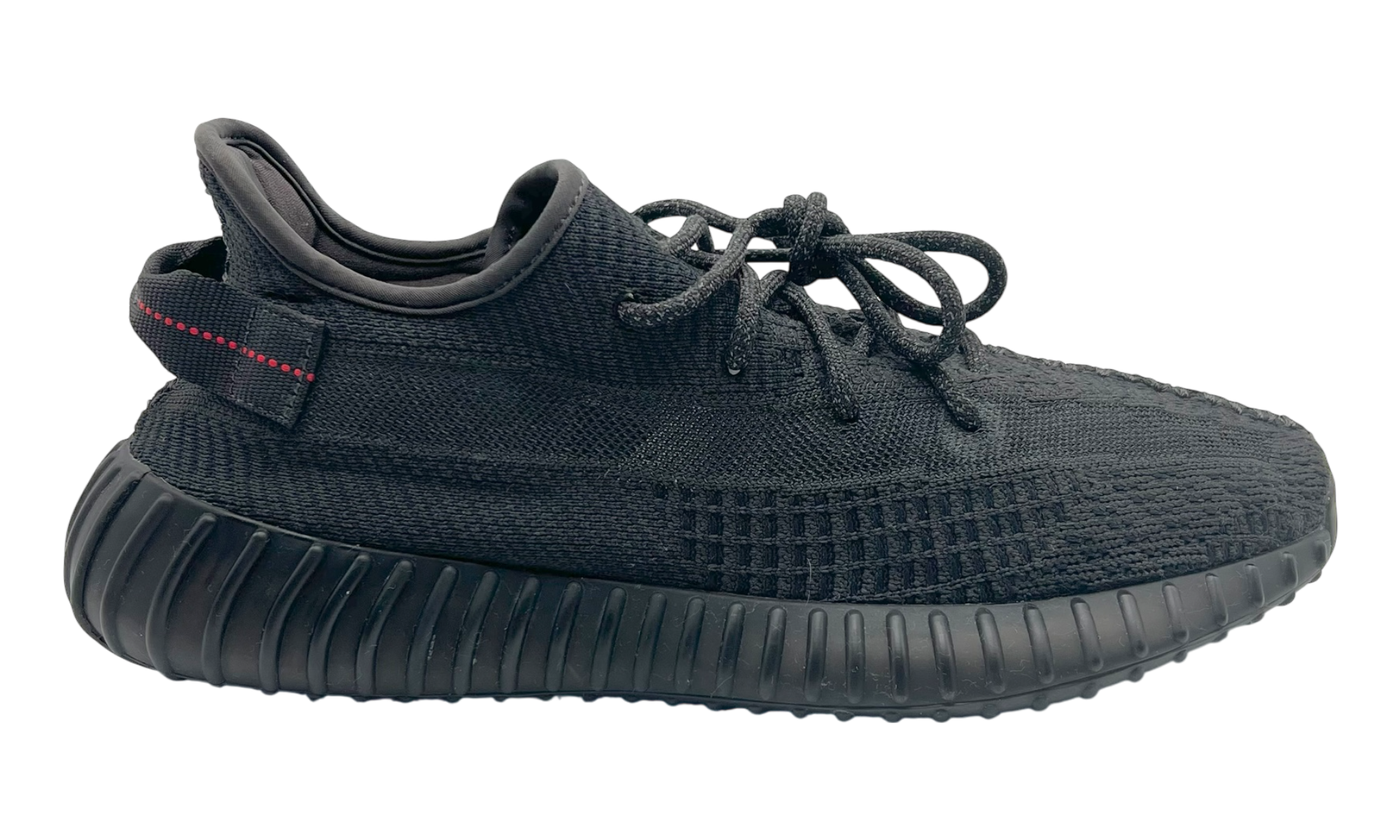 The Adidas Yeezy Boost 350 V2 "Black (Non-Reflective)" is a sleek, stealthy take on one of the most popular silhouettes in the Yeezy lineup. Released in 2019, this colorway features a monochromatic black Primeknit upper with subtle red stitching on the heel pull tab, offering a clean yet striking aesthetic that effortlessly pairs with any style. Designed by Kanye West, this model stays true to the signature Yeezy design with a streamlined shape, side stripe, and flexible Primeknit construction for a snug, sock-like fit. Beneath the surface, full-length Boost cushioning ensures exceptional comfort and responsiveness, making it as functional as it is fashionable.