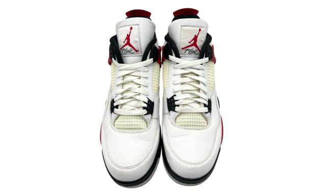 Bold, clean, and built to turn heads—the Air Jordan 4 Retro "Red Cement" puts a fiery twist on a classic silhouette. Featuring a crisp white leather upper accented by vibrant fire red cement detailing on the eyelets, midsole, and heel tab, this pair reimagines the legendary "White Cement" colorway with a modern punch. Signature elements like the mesh side panels, Jumpman branding, and visible Air unit keep it true to the AJ4 DNA.This pre-owned pair is in excellent, perfect for anyone looking to add some color and legacy to their rotation.