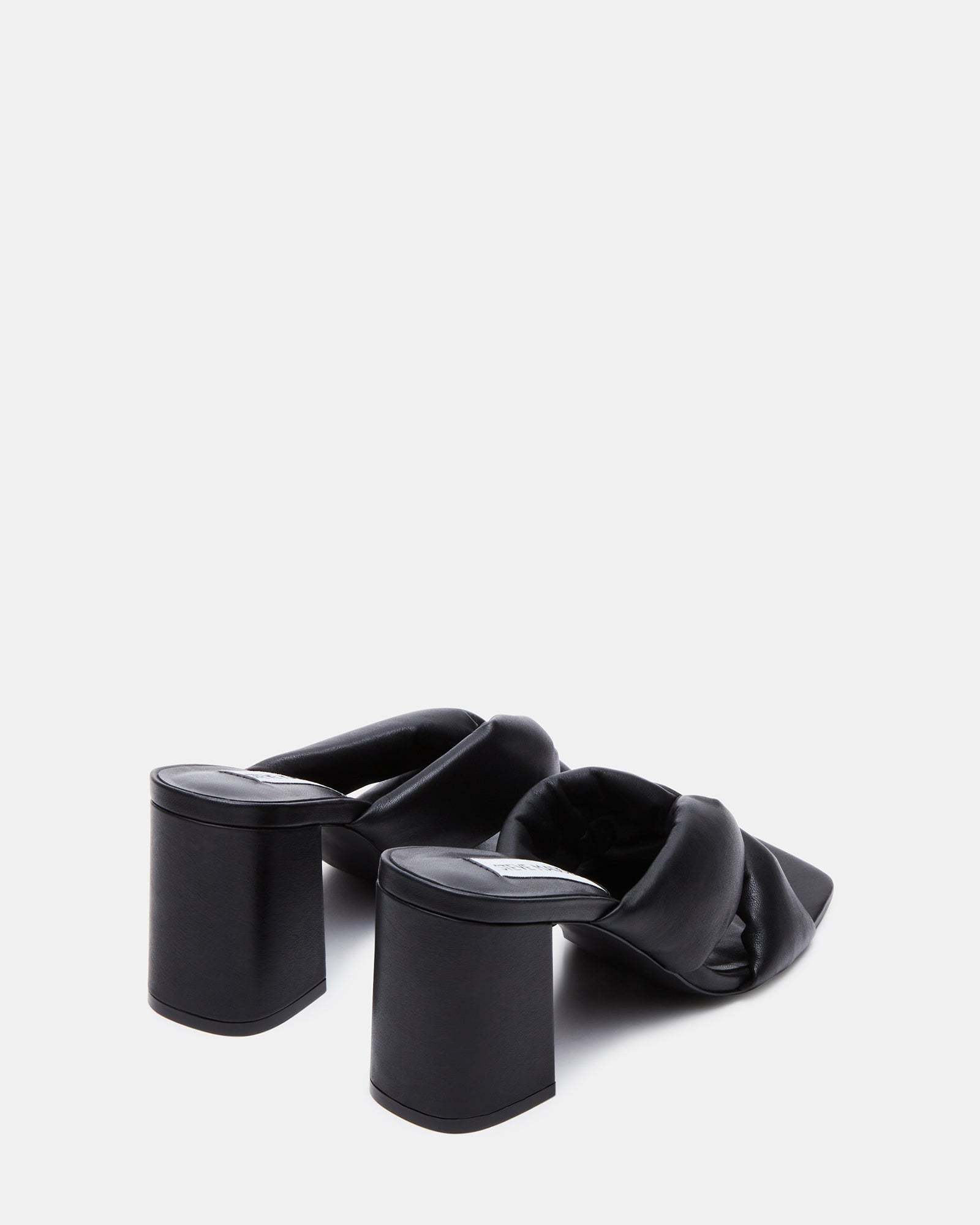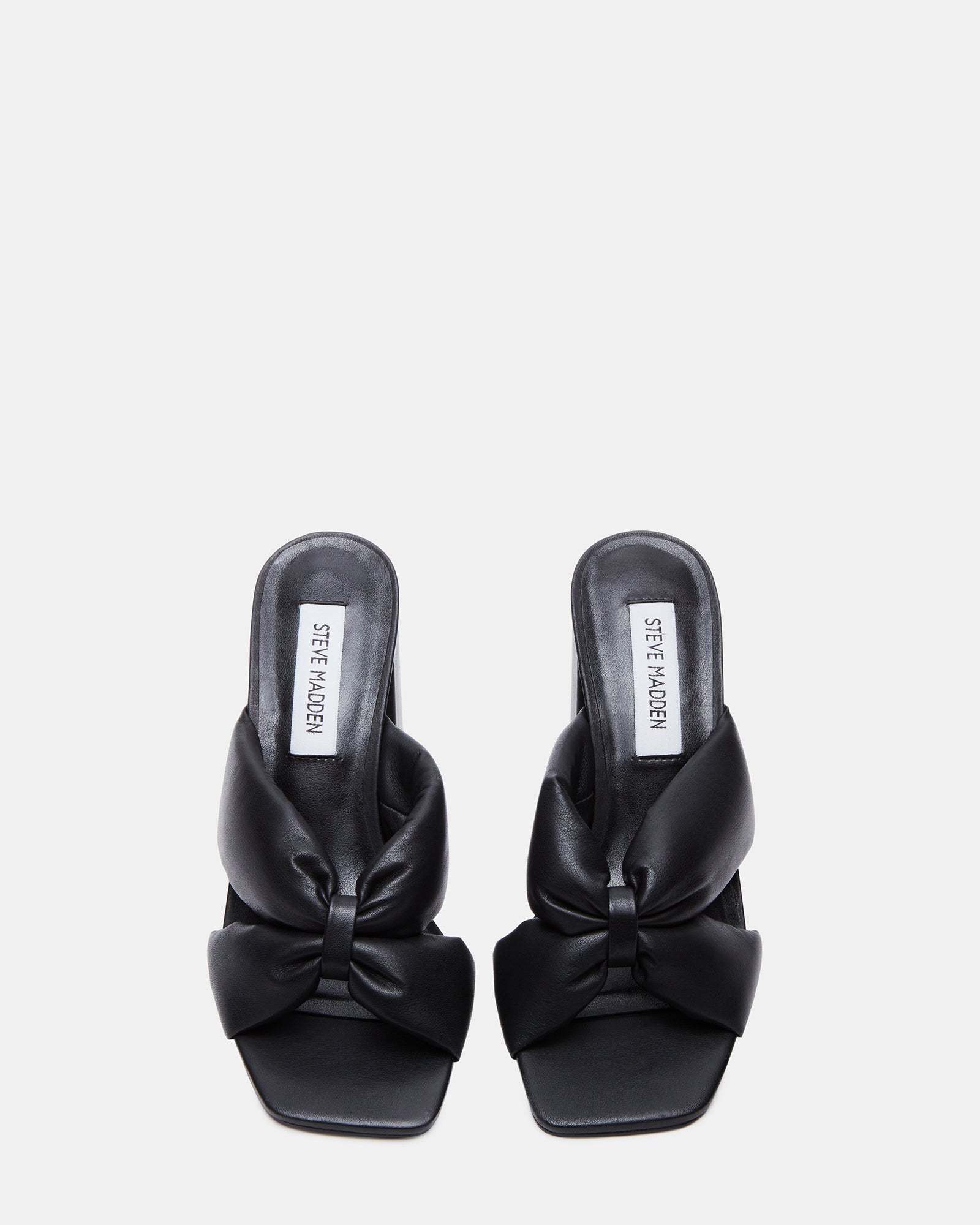 slide silhouette and comfortable puffed straps crossed over the foot and cinched above the toes.