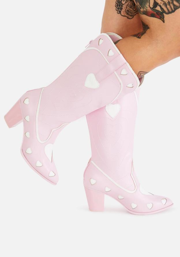 Pink Heart Space Cowgirl Boots