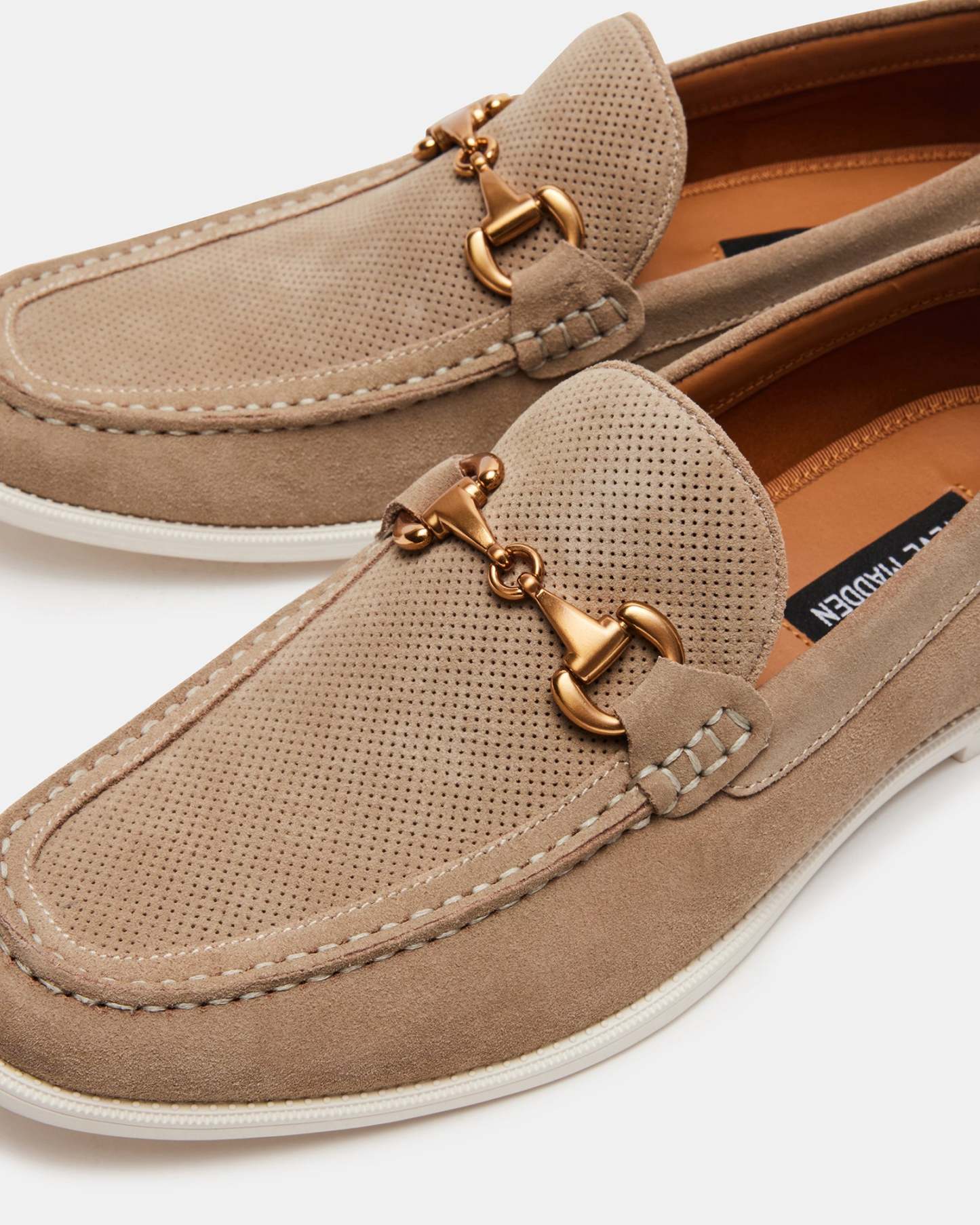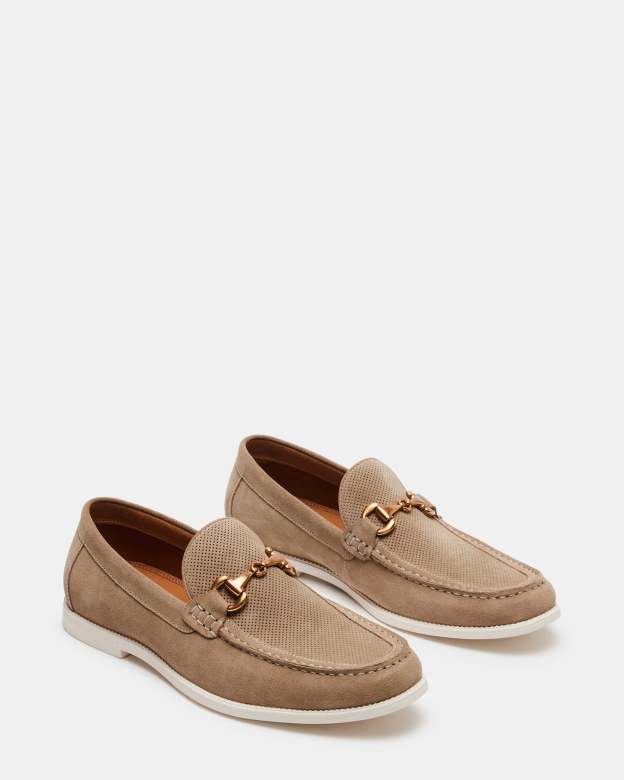 Expertly crafted with luxurious suede, the RENZZI loafer features a sleek, slip-on construction and metal bit embellishment across the vamp. Designed with a classic moc toe, these casual loafers offer both style and comfort. Elevate any outfit with this sophisticated addition to your wardrobe.