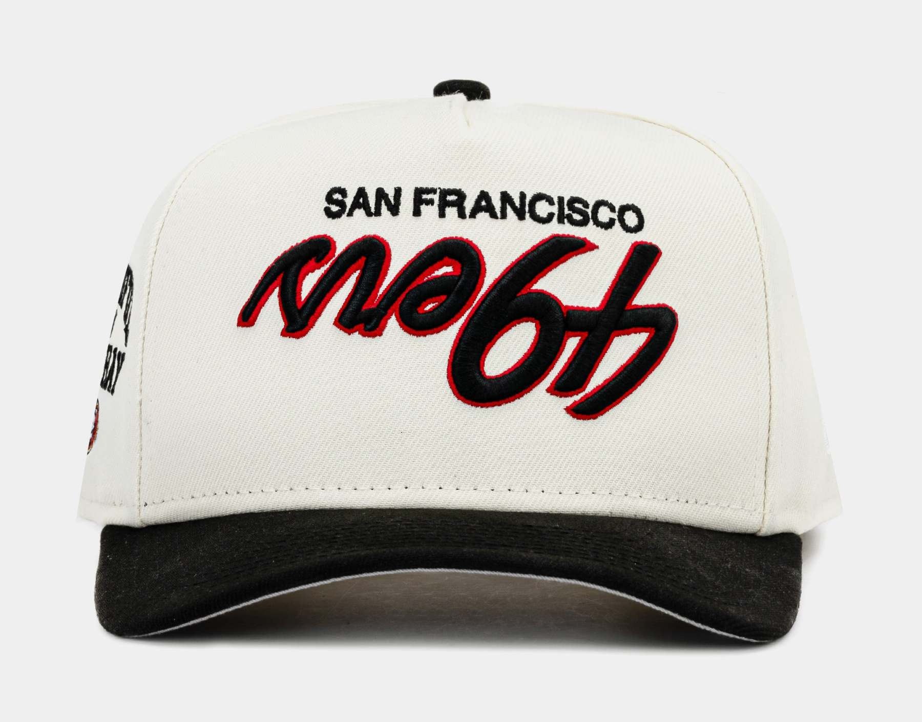 Introducing the San Francisco 49ers 950AF Snapback Men's Hat. A sleek fusion of style and fandom. Featuring the iconic 49ers logo on a beige backdrop with bold black and red accents, this snapback exudes both versatility and team pride. Crafted for comfort and durability, it's the perfect accessory to showcase your loyalty on game day or any day.