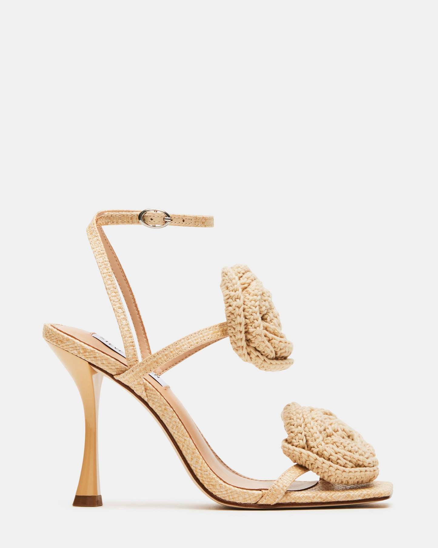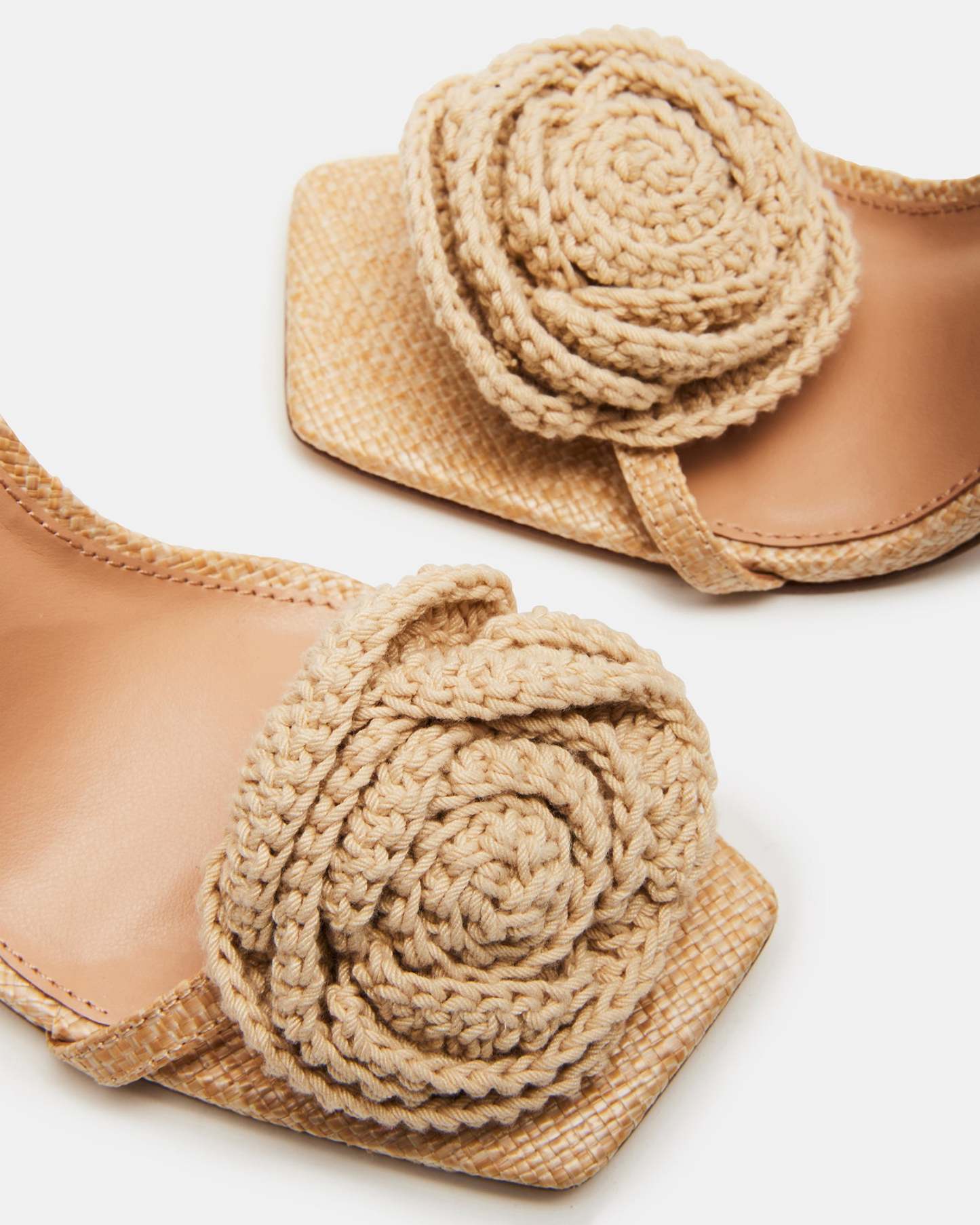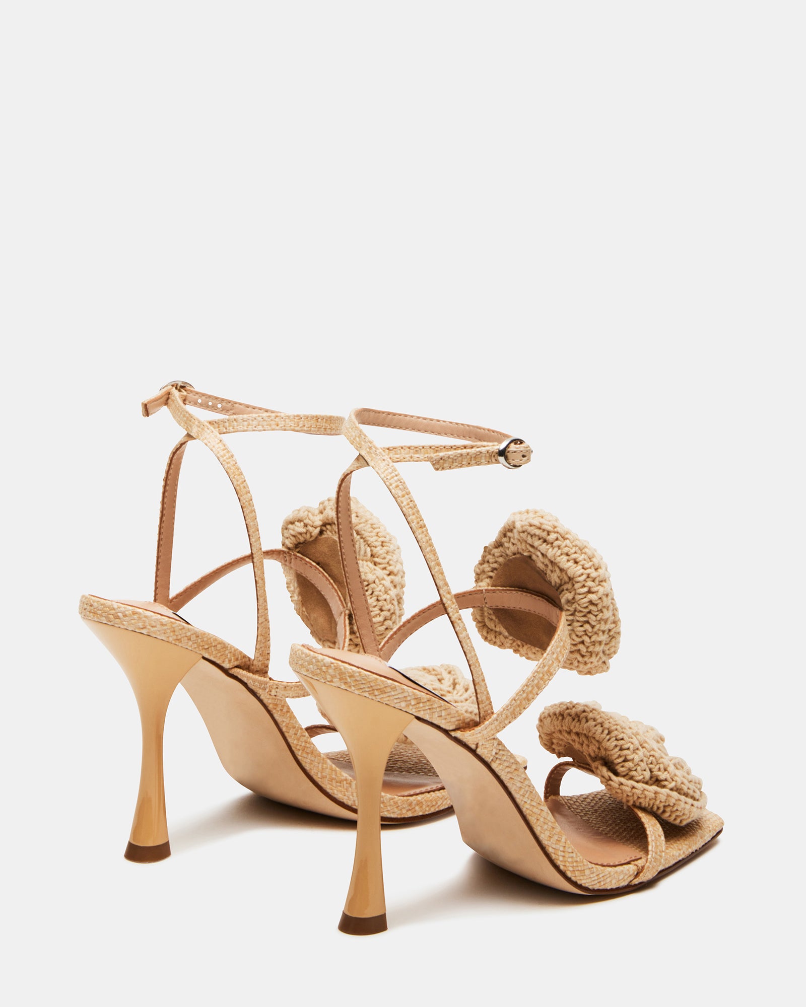 Step into style with ROSABEL heels. These high heels feature skinny straps and a square toe, topped with a playful rose embellishment. Elevate any outfit with these unique and chic shoes.
