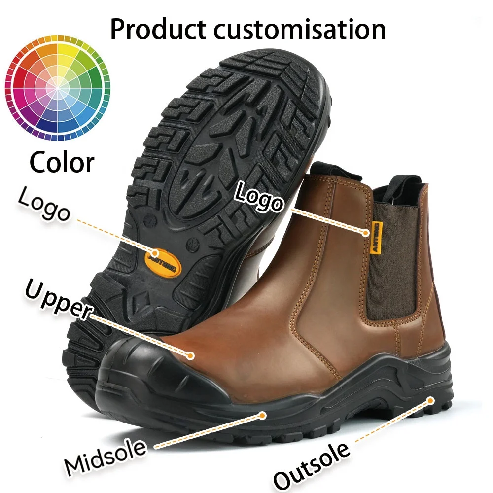 ANTENG Steel Toe Leather Safety Shoes Without Laces Anti-puncture Work Boots Hombre