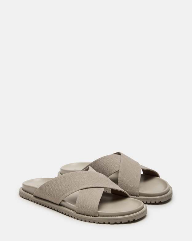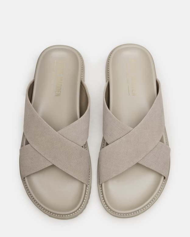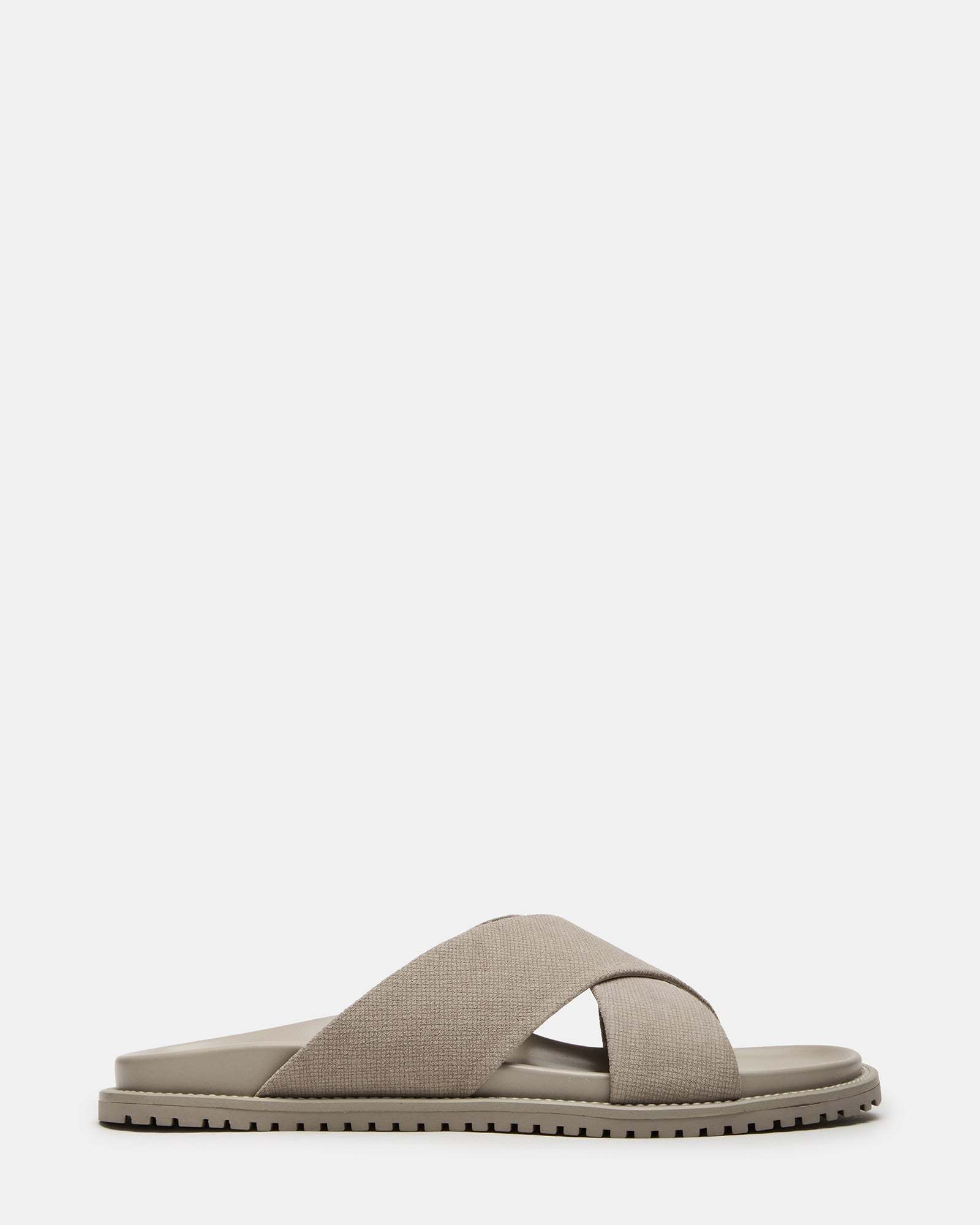 Experience comfort and style with our CALOY flat sandals. Crafted with a washed, embossed suede upper material and slip-on construction, these sandals feature a crisscross design that adds a touch of elegance. Perfect for any occasion, let your feet breathe in style with these comfortable and versatile sandals.