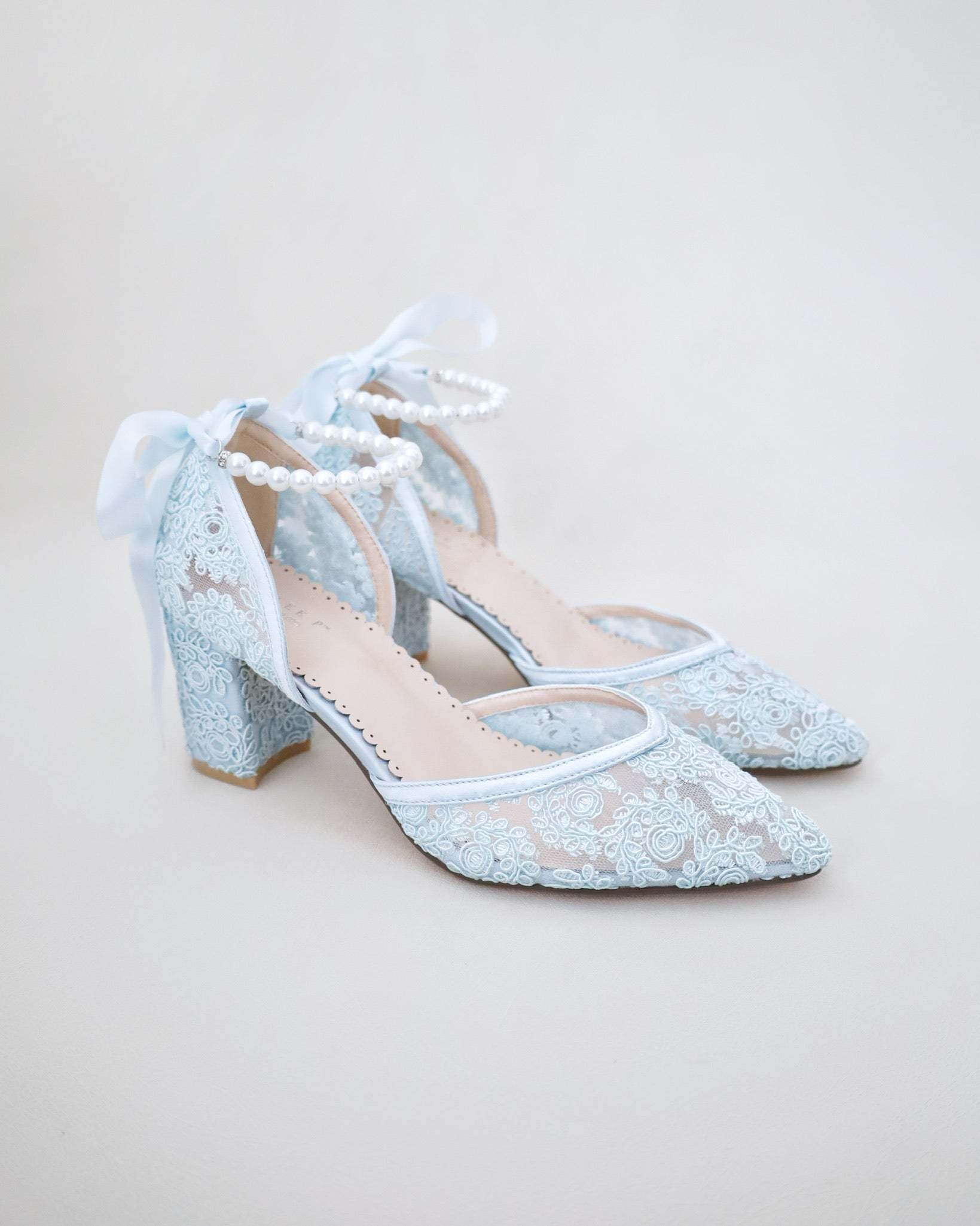 Bridal Lace Block Heel with Pearls Strap