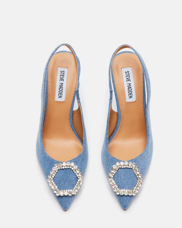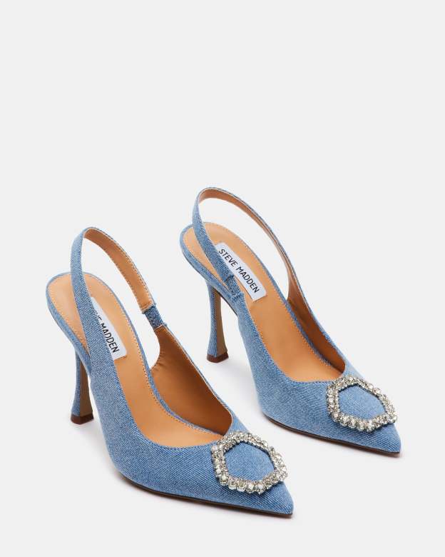 Embellished point toe slingback pump