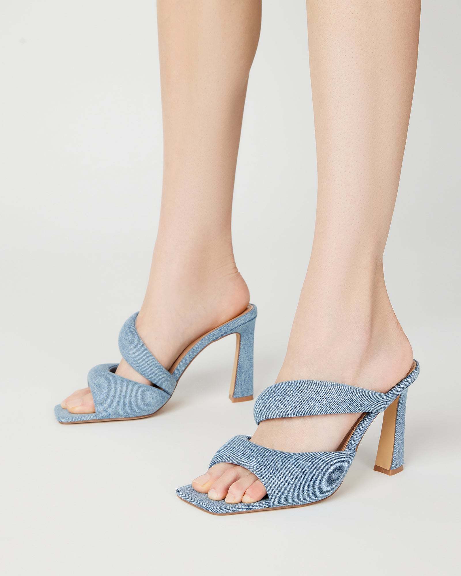 Square toe heeled slide sandal
