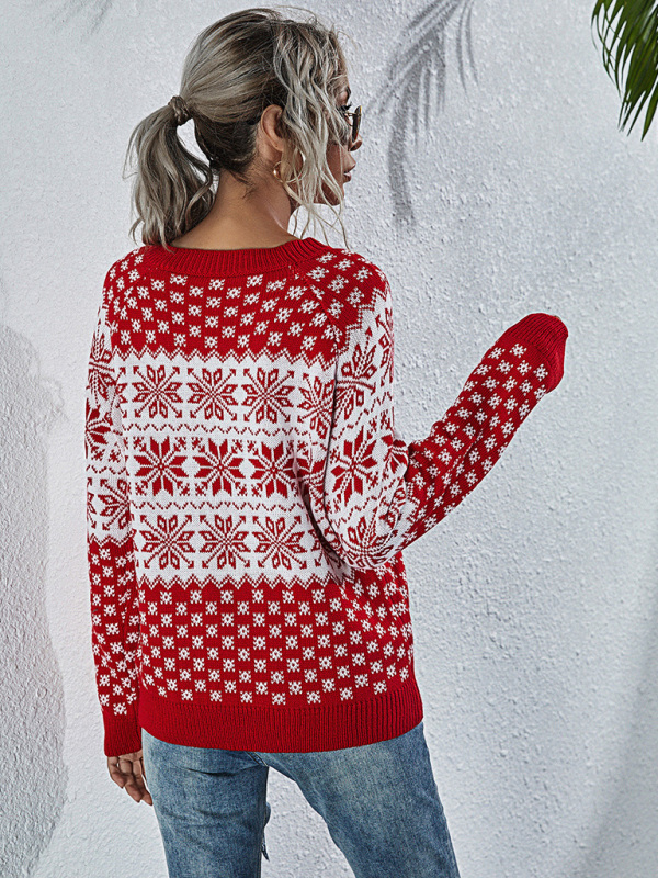Women's Snowflake Knit Loose Long Sleeve Pullover Crew Neck Christmas Sweater