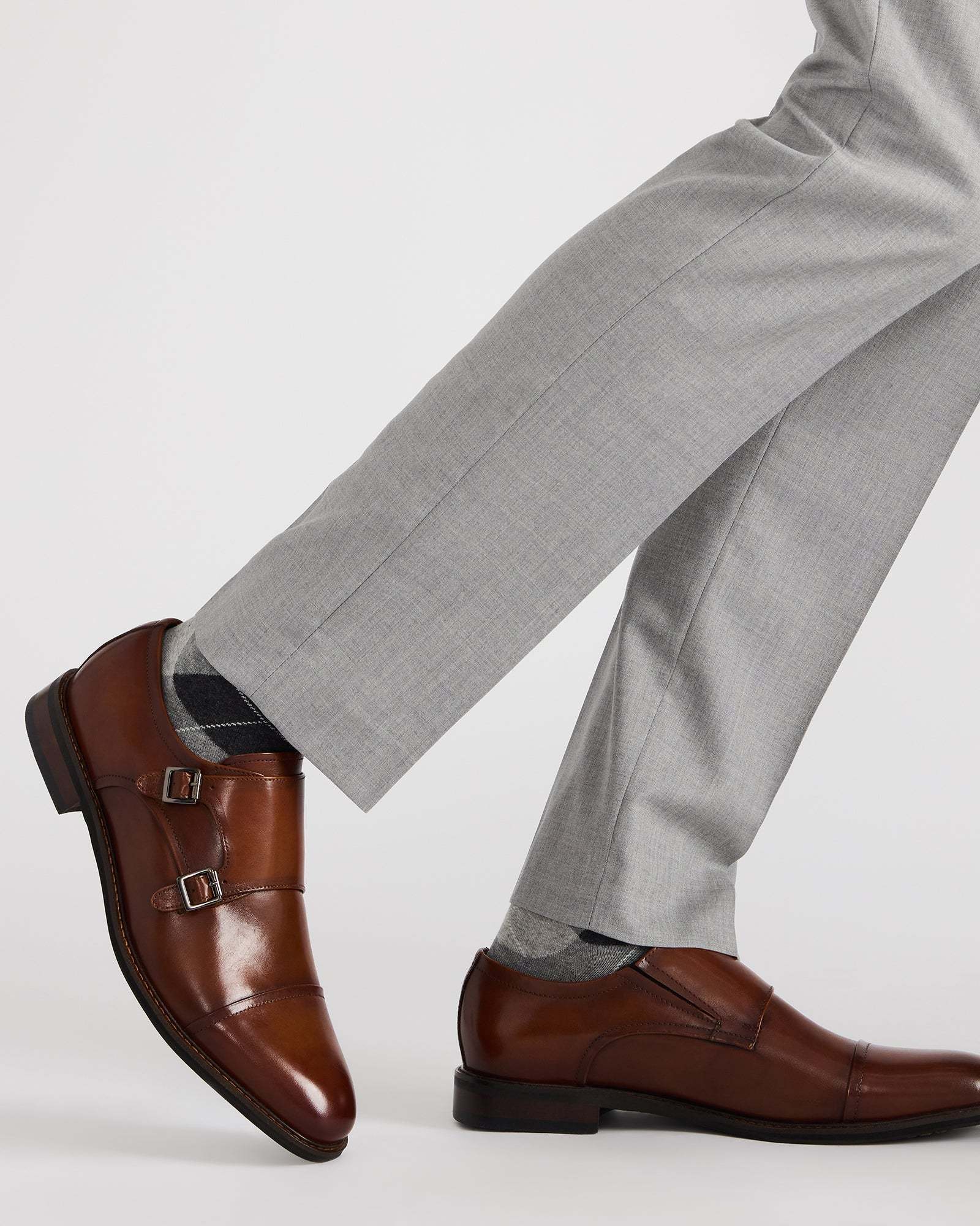 These HARAN dress shoes with buckles provide a sleek and polished look for any formal event. Made with high-quality materials, they offer durability and style. With their unique buckle design, they add an extra touch of sophistication to your outfit. Elevate your shoe game with this unique dress shoe.