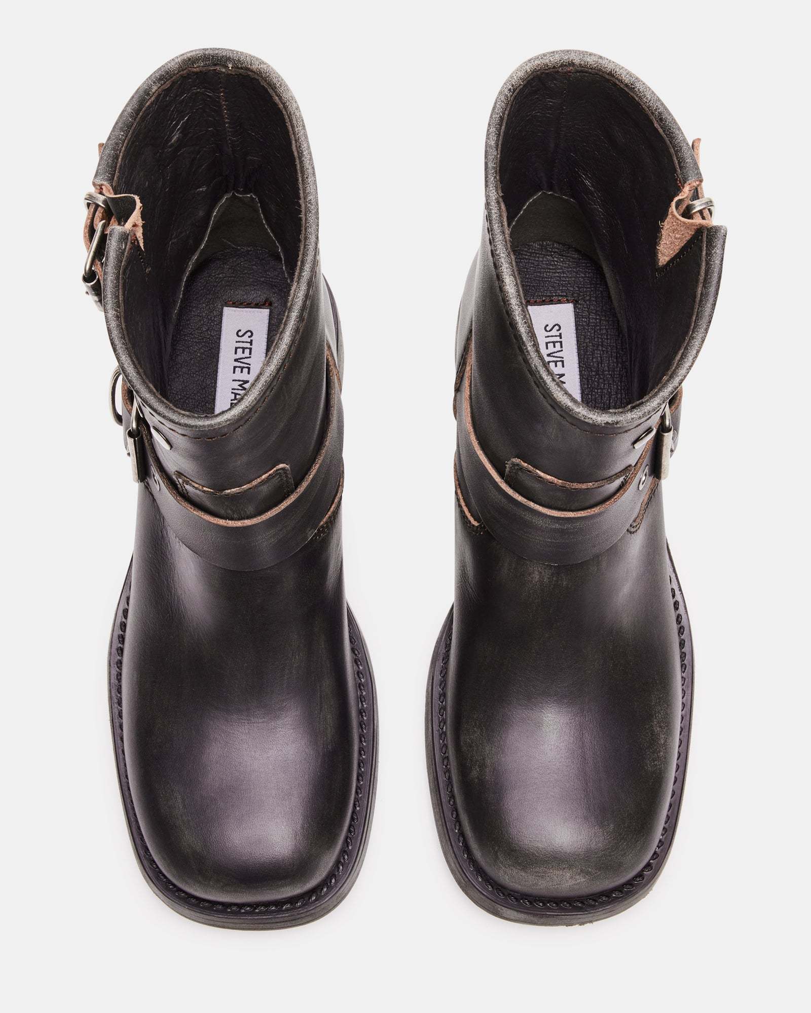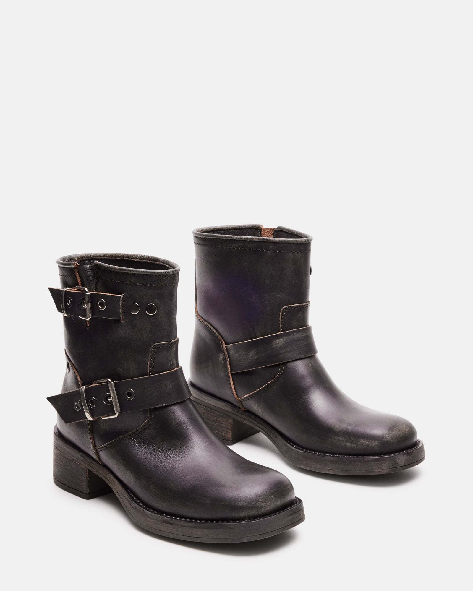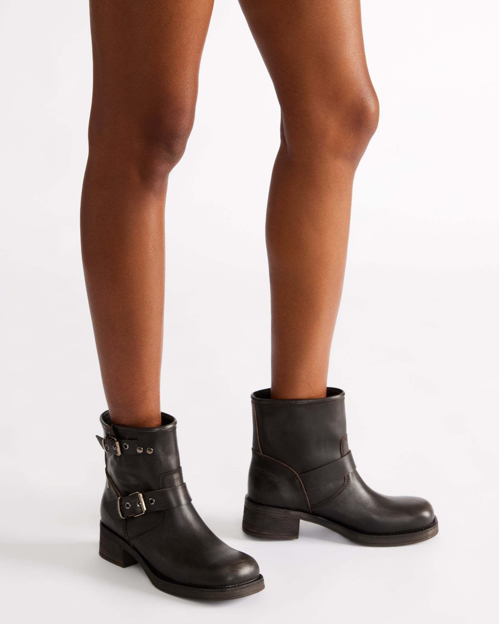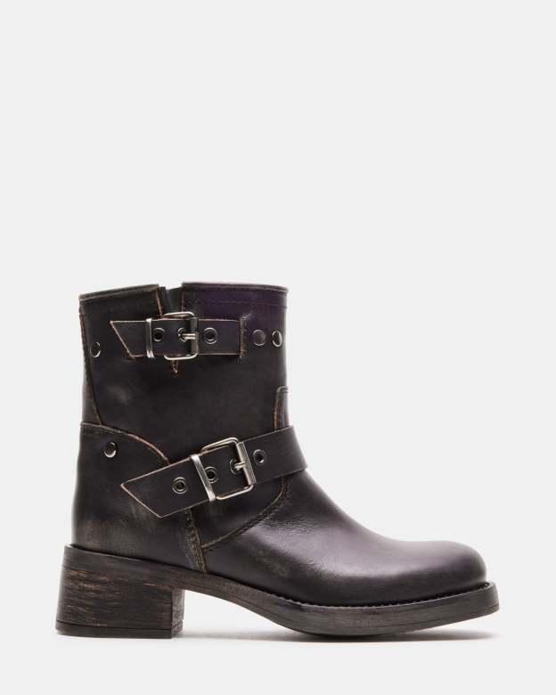 Elevate your style with the RAMPANT moto boot. Constructed with an ankle bootie design and sturdy lug sole, these boots are perfect for making a statement. The sleek leather adds a touch of sophistication to any outfit.