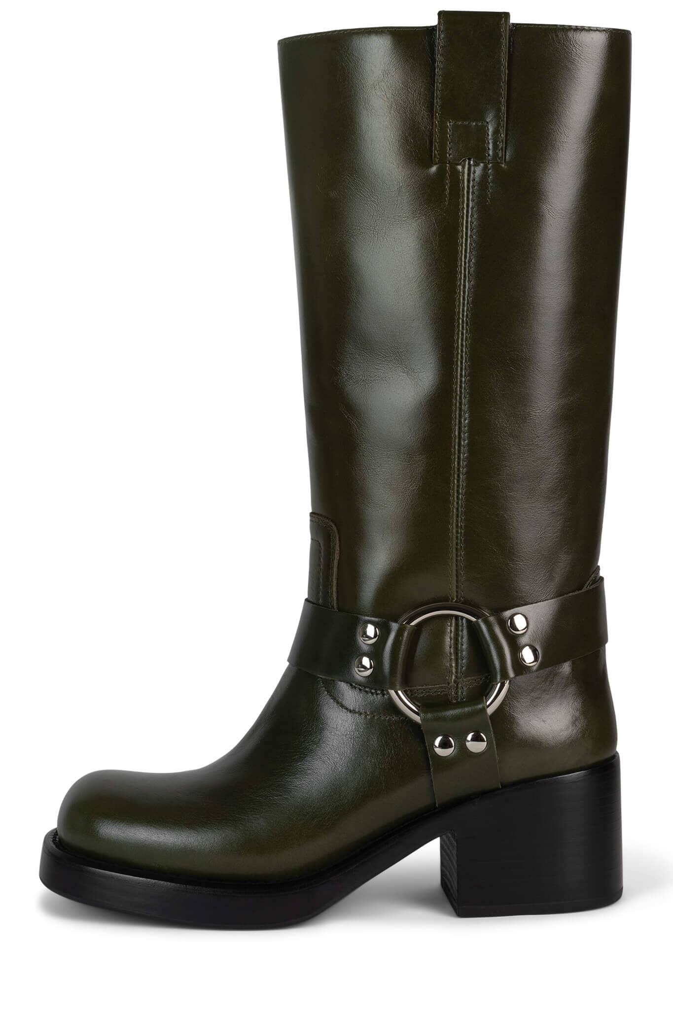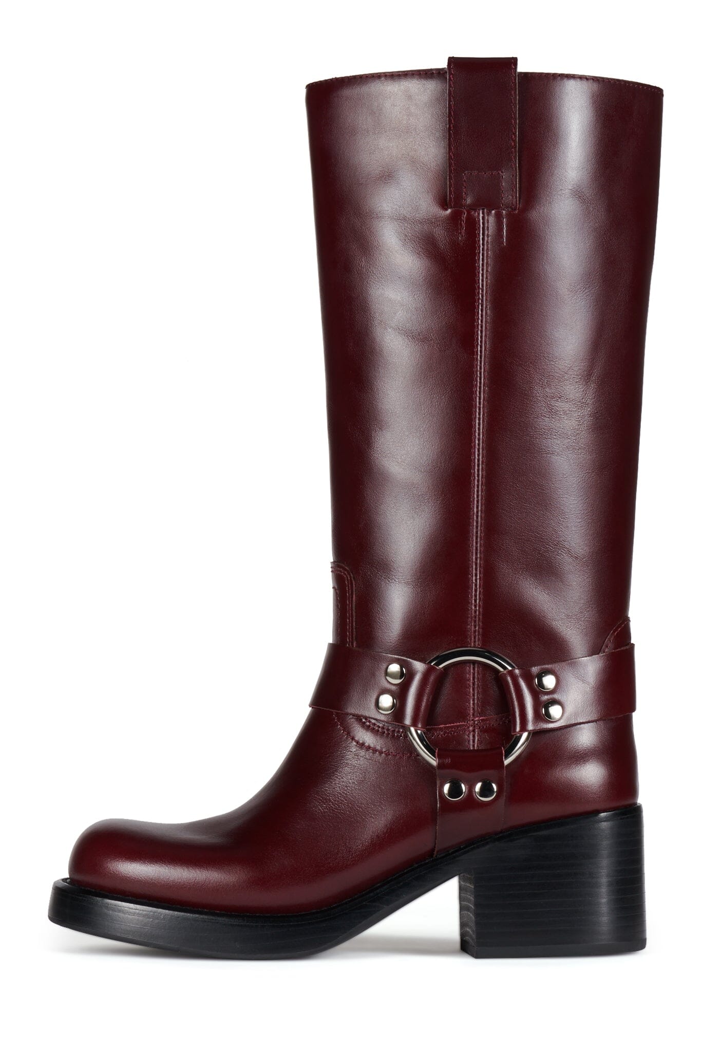 Mid-calf moto boot with western-inspired shaft