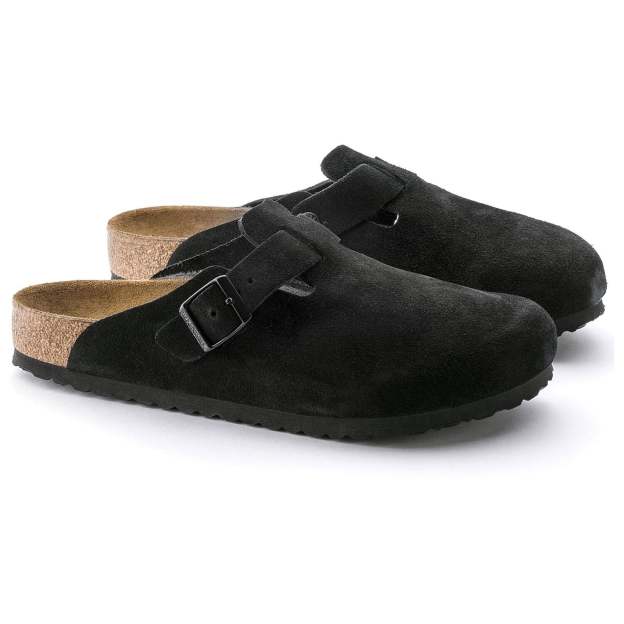 Our most sought-after clog. the Boston lends a fashion-forward edge to any style. Velvety suede gives the laid-back look classic. every season appeal. Featuring an additional foam layer for cushioning. the soft footbed offers extra comfort plus go-all-day support.