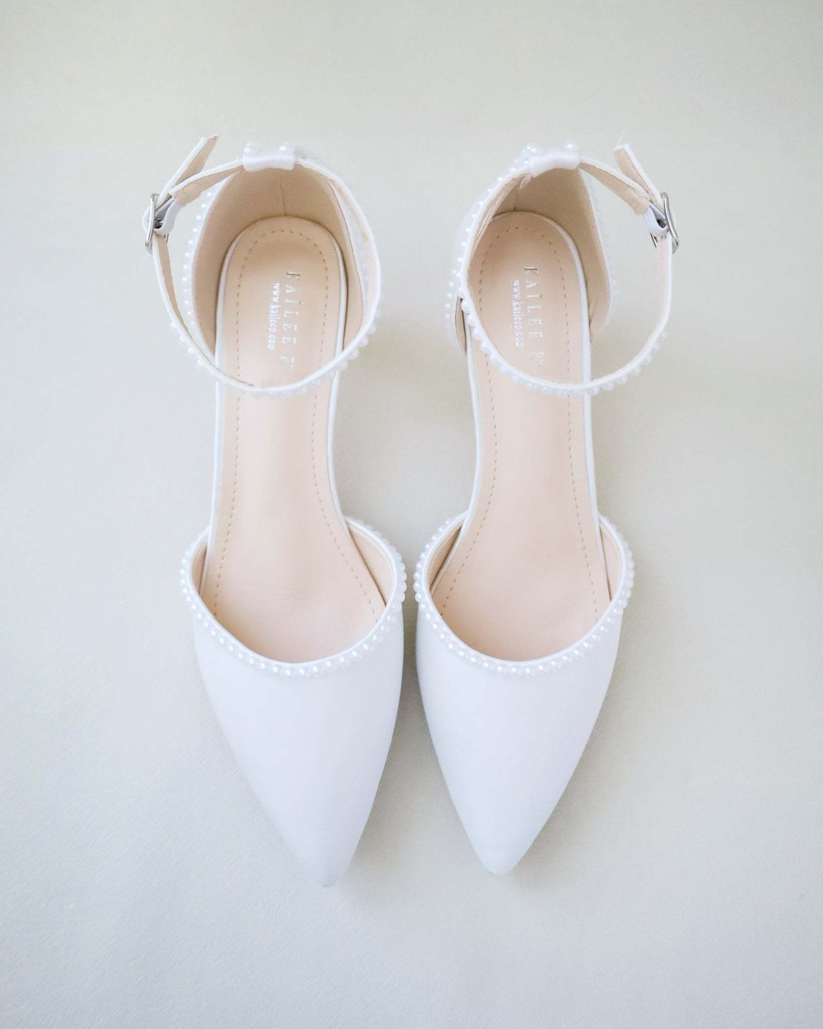 Classic satin pointy toe with low heels with an added touch for romantic, elegant and feminine look. The prettiest pearl details on this elegant satin heel checks off all the right boxes. The delicate mini earl beads are placed carefully by hand to create a graceful classic bridal shoe. Perfect for brides, bridal party, bridesmaids, prom, parties, or any special occasion.
