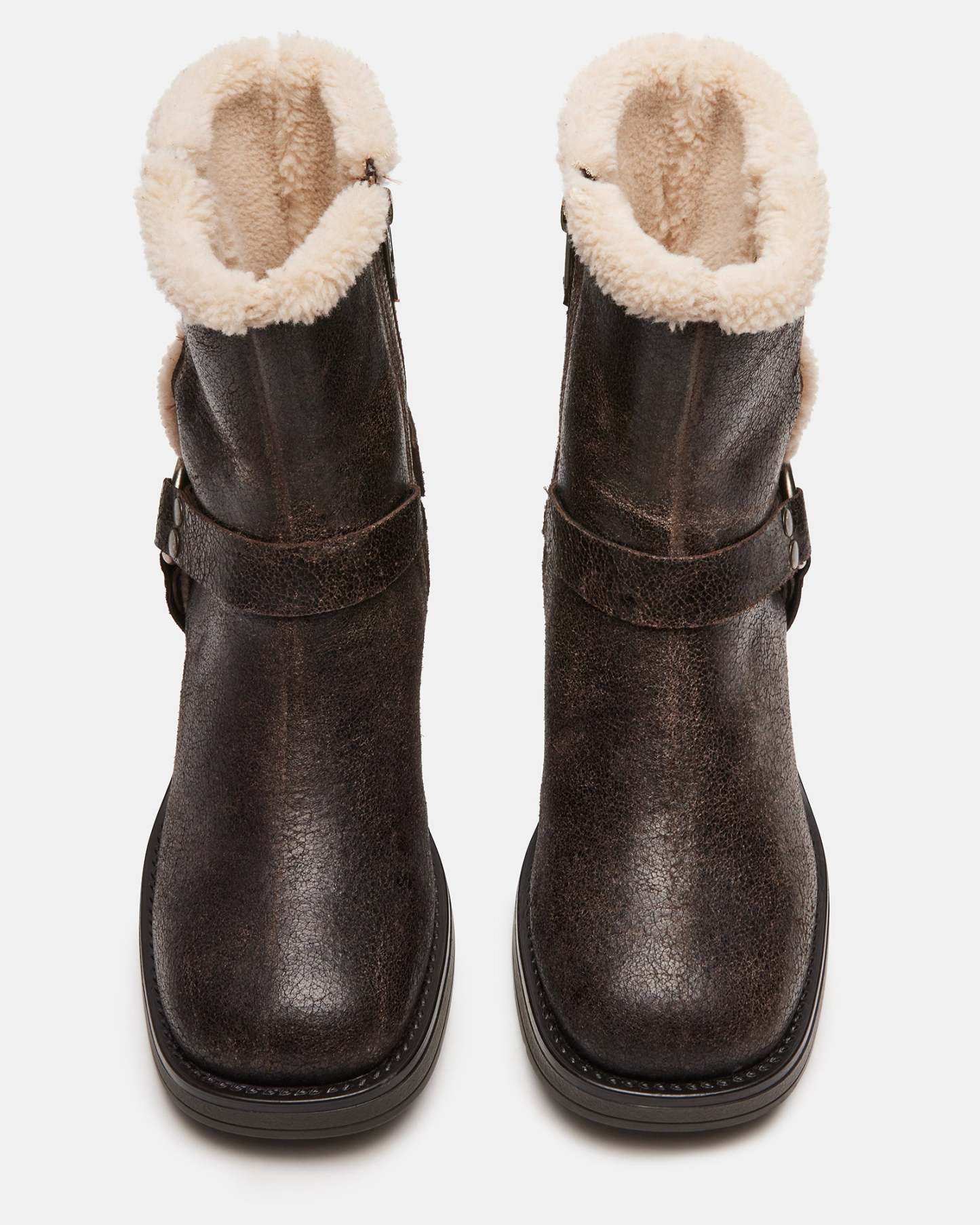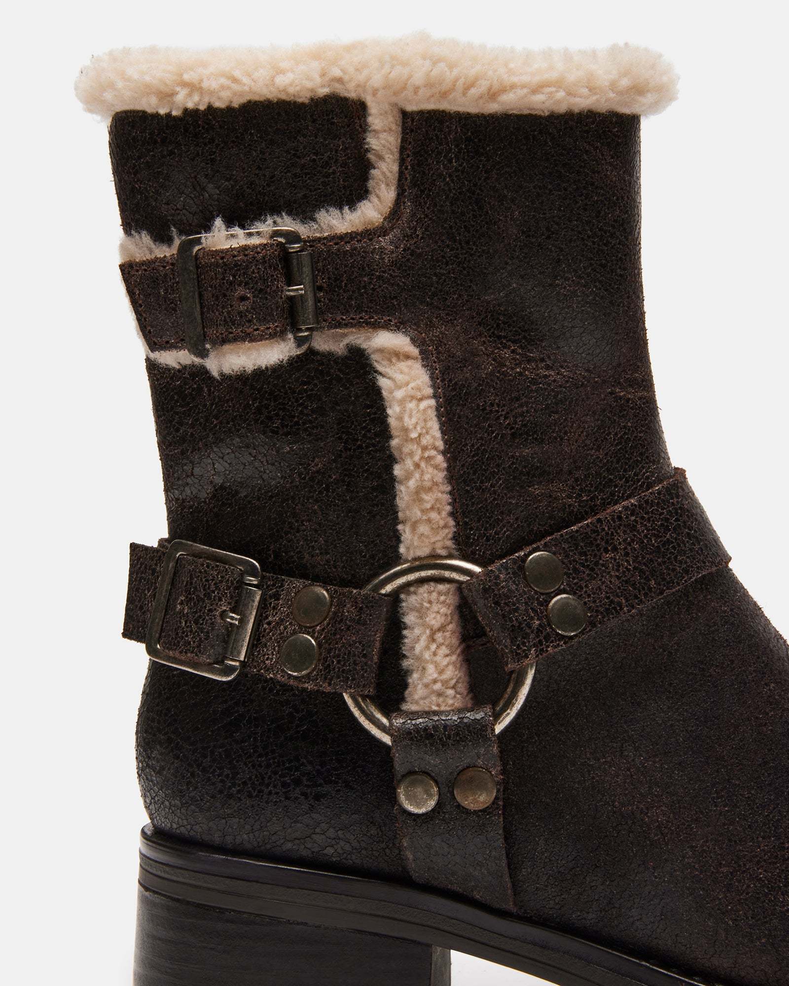 The BRIXTON faux shearling moto bootie keeps you comfortable no matter what your day has in store for you with a wide square toe sole, an easy block heel, and a super-soft faux shearling interior. Adjustable straps with chunky metal hardware add a little edge to the look and give you a customized fit.