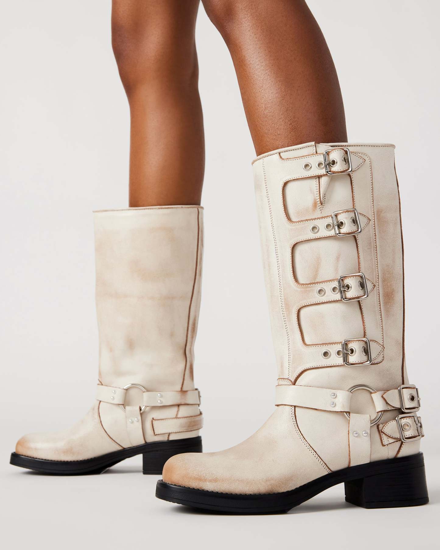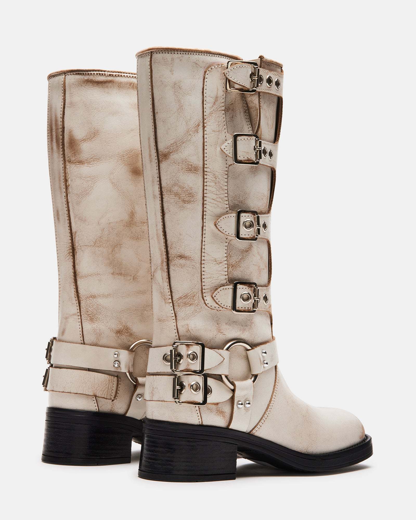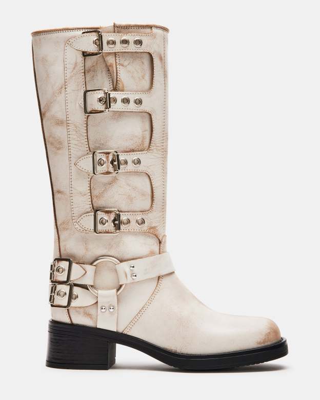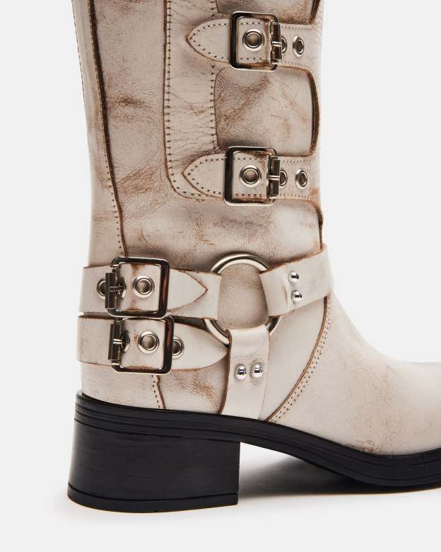 The ROCKY kneebootfeatures the wide profile of an engineer boot with harness and buckle hardware adding an industrial edge and giving the design an adjustable fit.