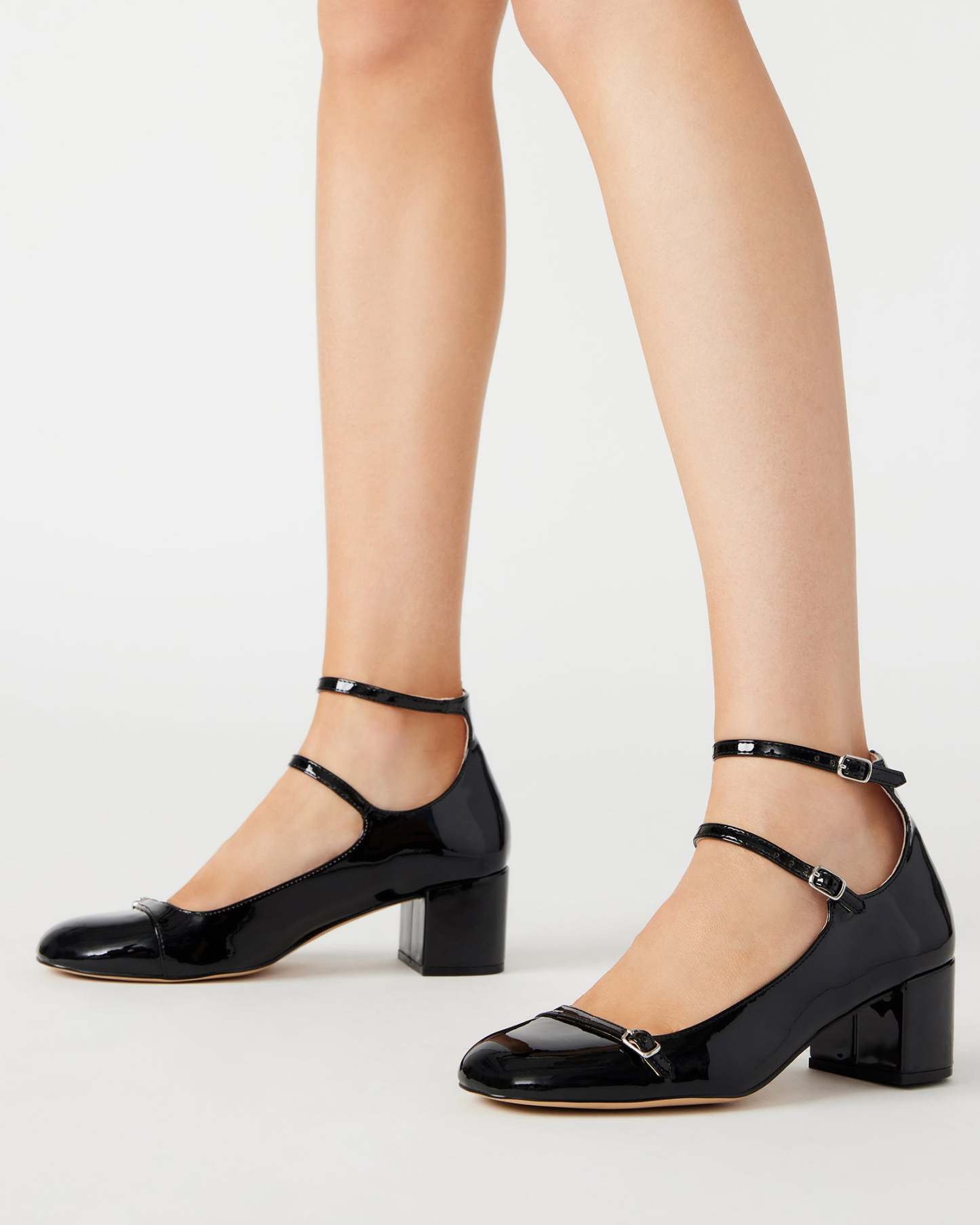 and secured with slender straps over the top of the foot and around the ankle. A matching decorative buckle strap over the toe finishes the look.