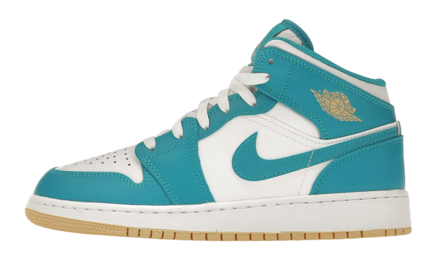 The Air Jordan 1 Mid "Aquatone" GS brings a fresh, vibrant take to the iconic Air Jordan 1 silhouette, perfectly sized for younger sneaker fans. This Grade School release stands out with a crisp white leather base and striking Aquatoneoverlays, creating a clean yet energetic look. A soft Celestial Gold hue adds subtle contrast to the Wings logo, Jumpman branding, and tongue tag—giving the shoe just the right amount of pop. Inspired by the legendary design worn by Michael Jordan in 1985, the AJ1 Mid keeps the timeless elements intact: perforated toe box for breathability, padded collar for comfort, and a rubber cupsole with Air-Sole cushioning for all-day support. Whether rocking them casually or making a statement with your fit, the "Aquatone" colorway brings both versatility and bold style to the table.