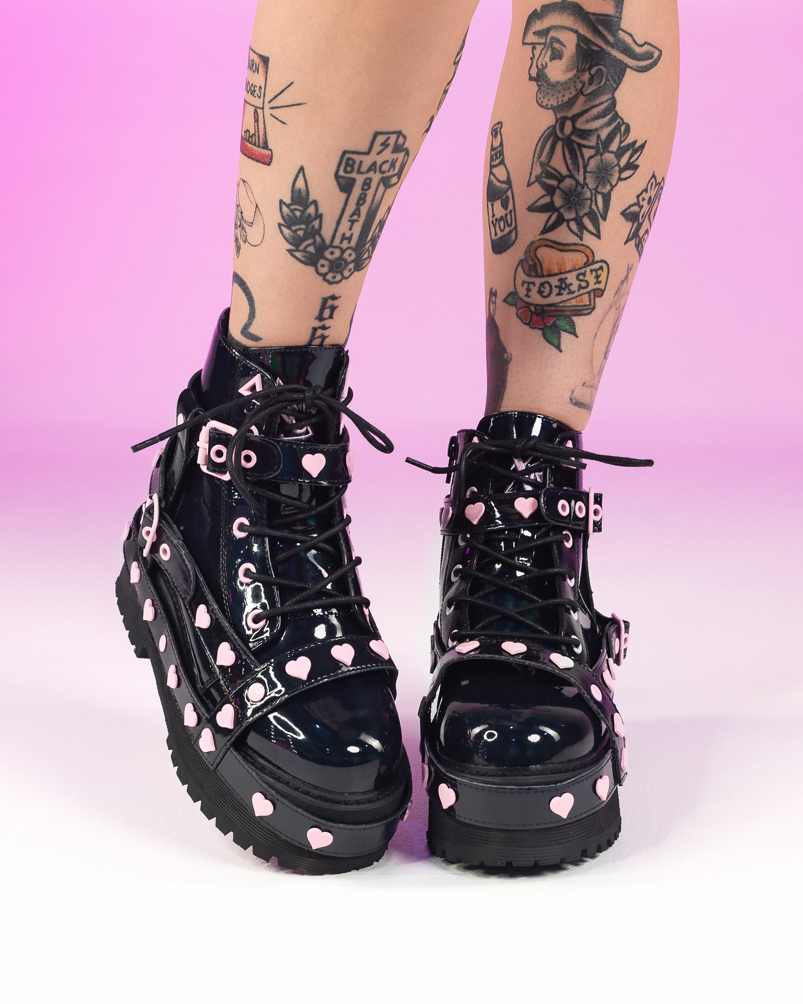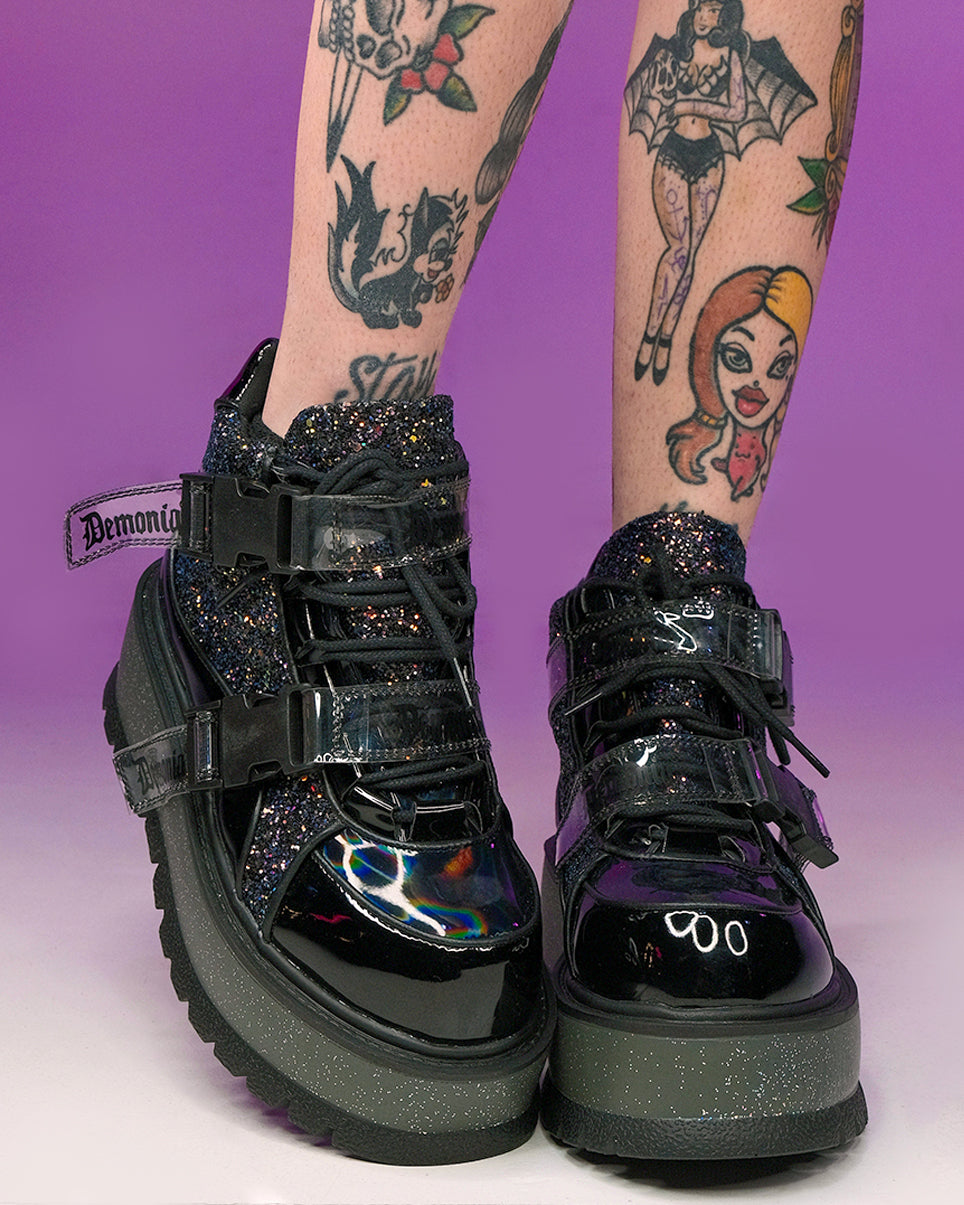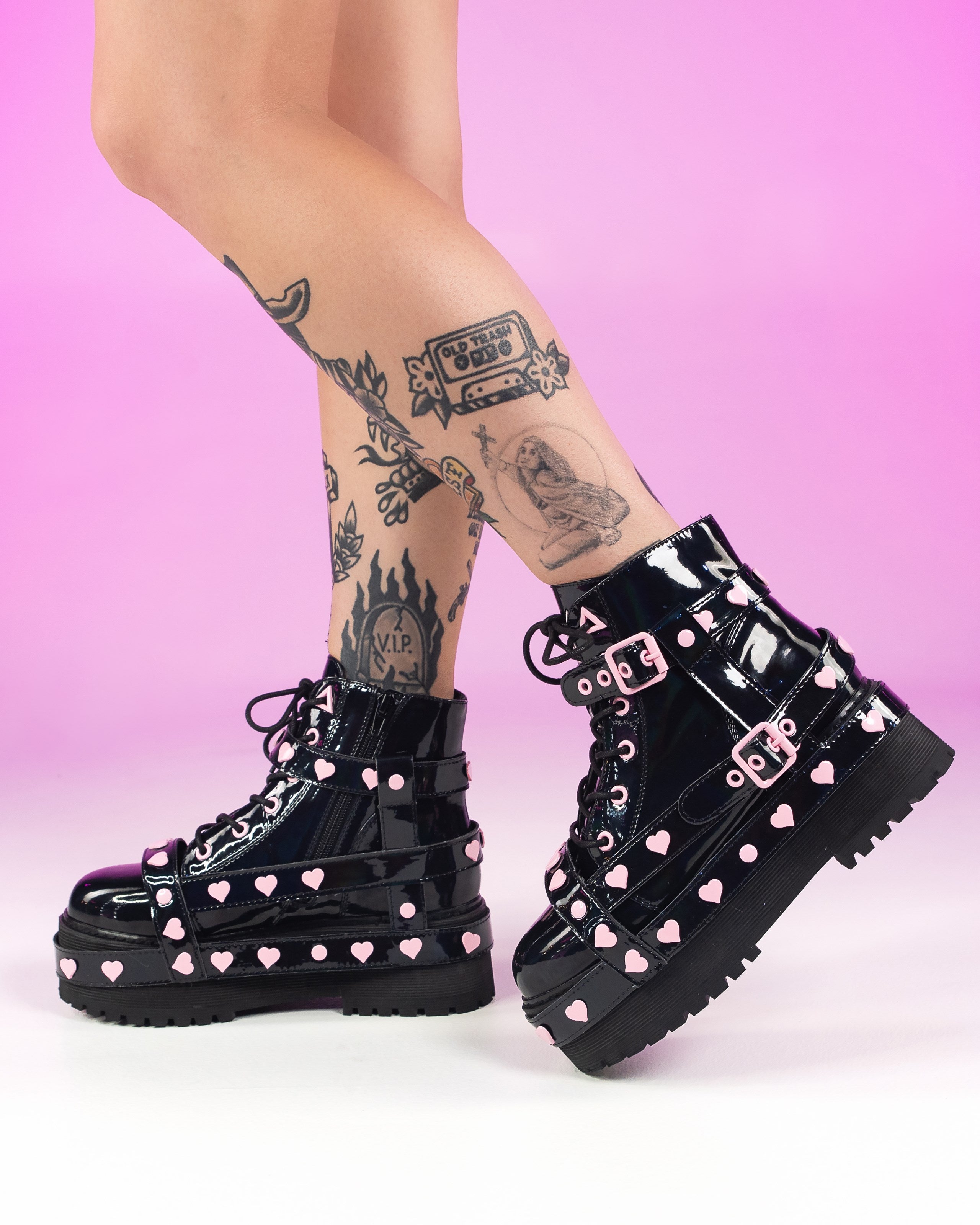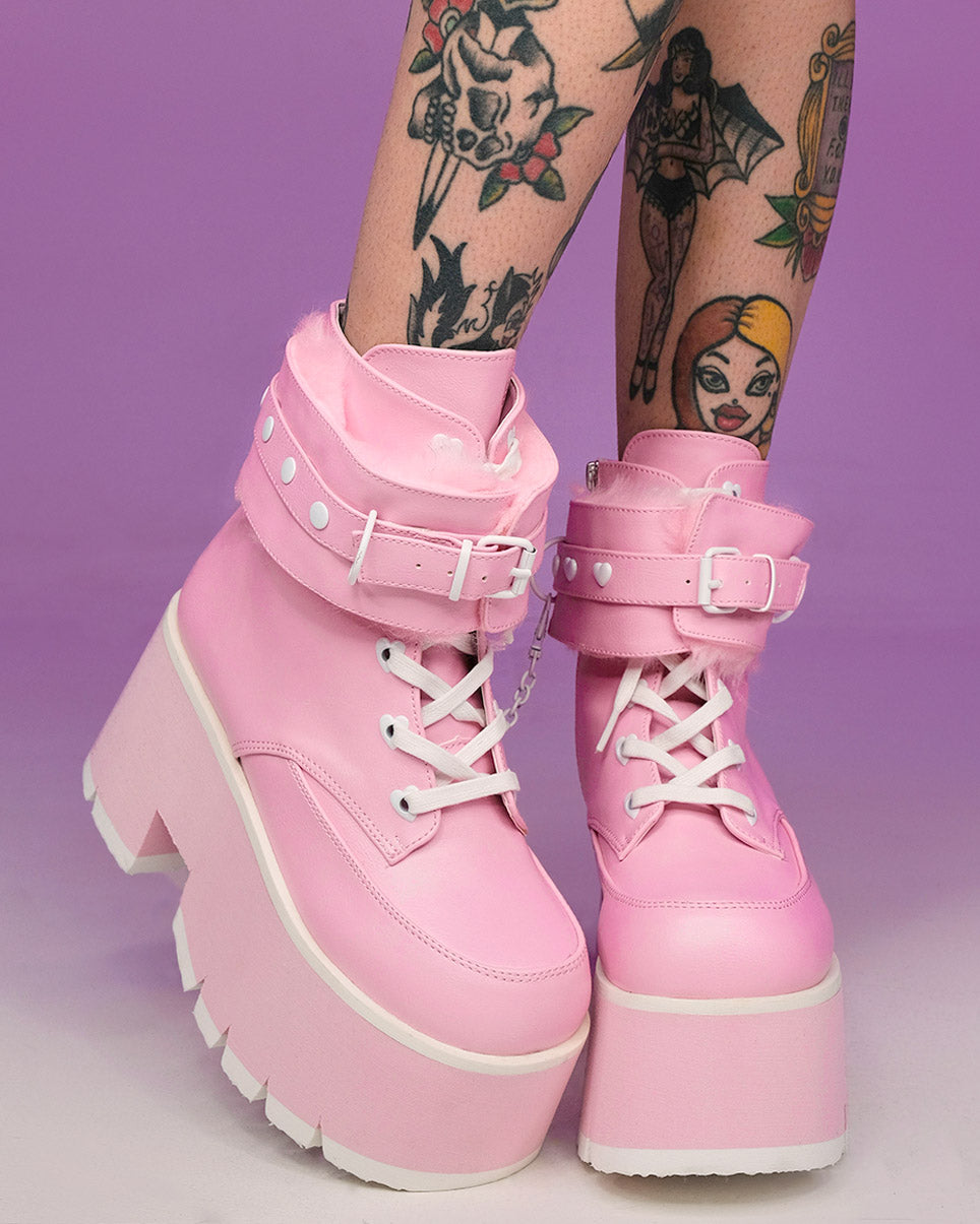 Demonia Emily Vegan Leather Heart-Buckle Boot
