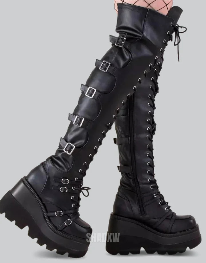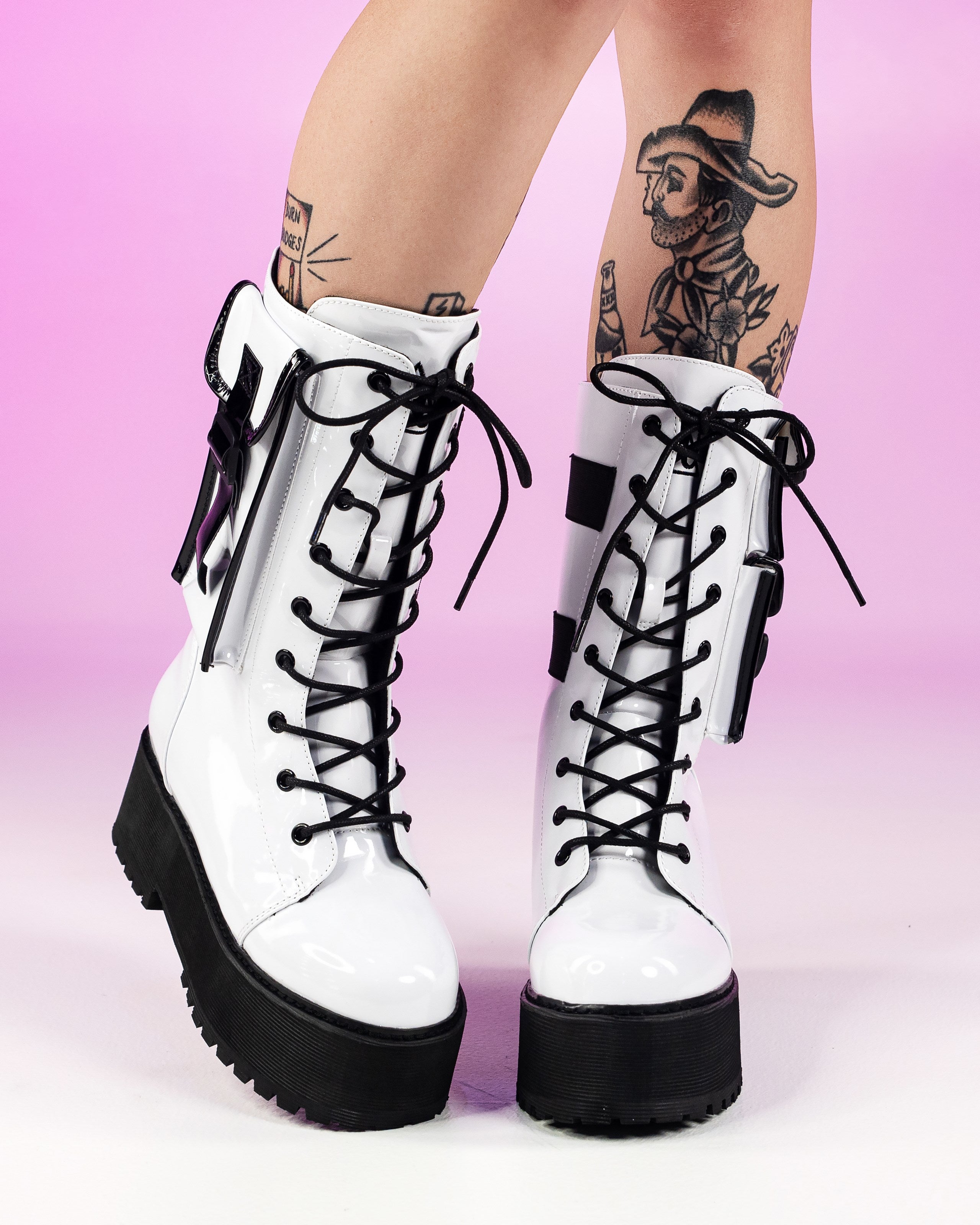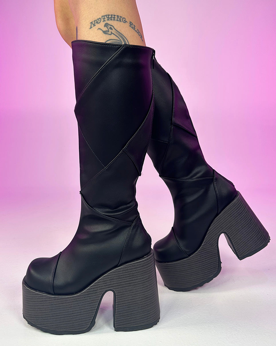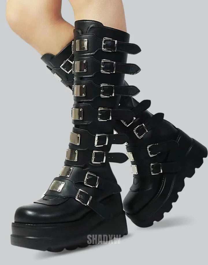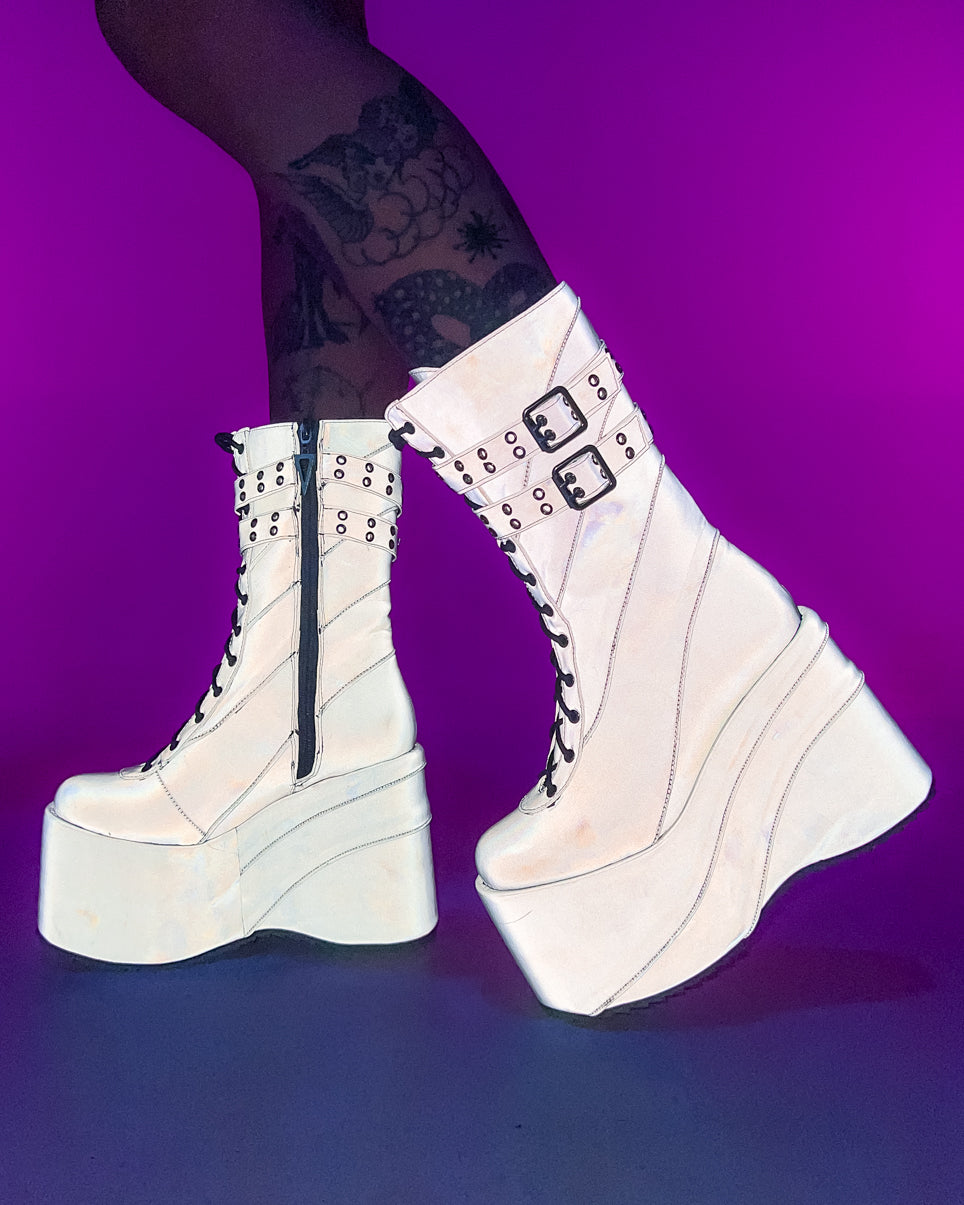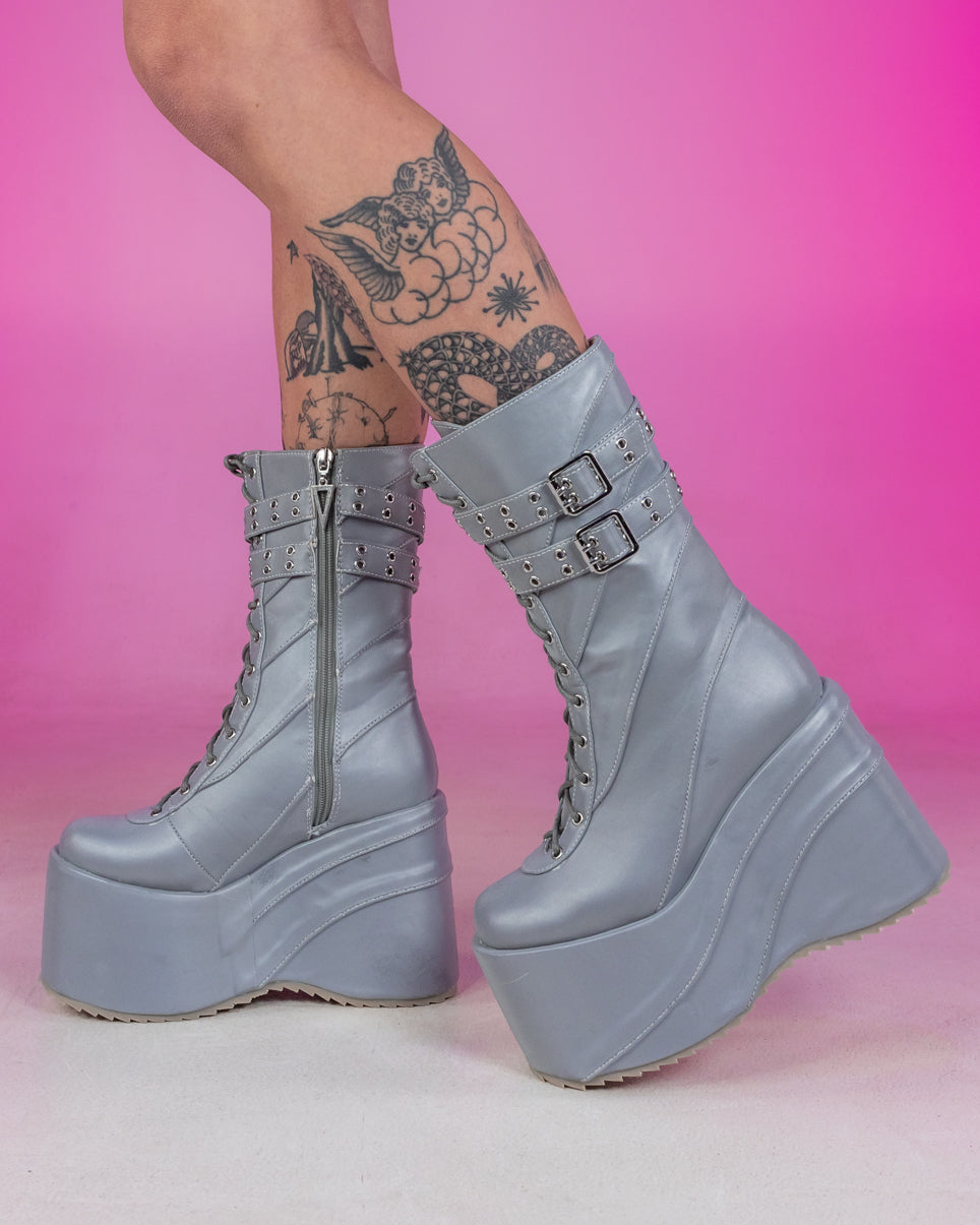 Demonia Shaker Black Lace-Up Mid-Calf Platform Boot