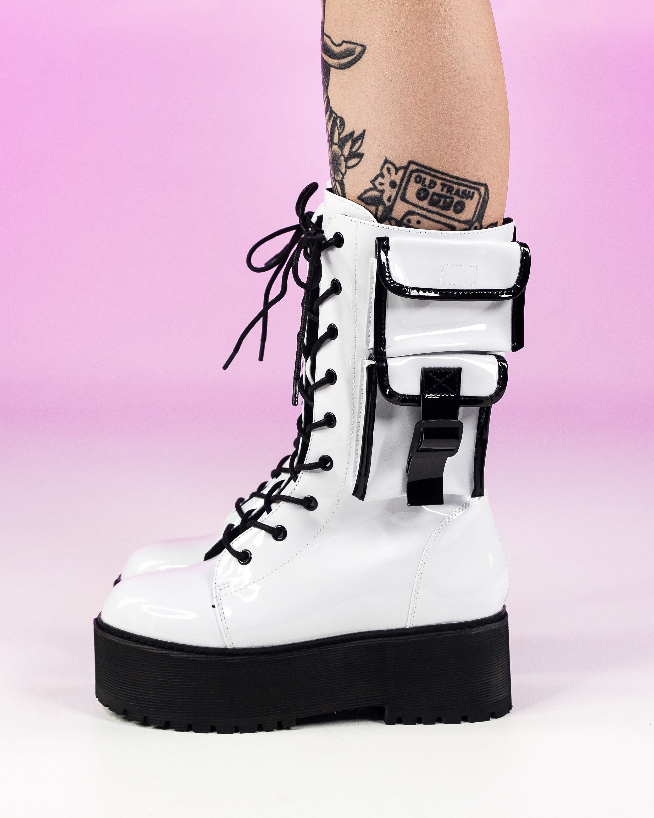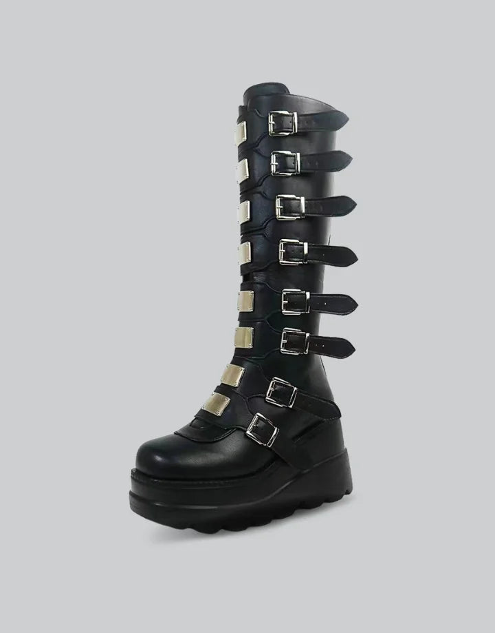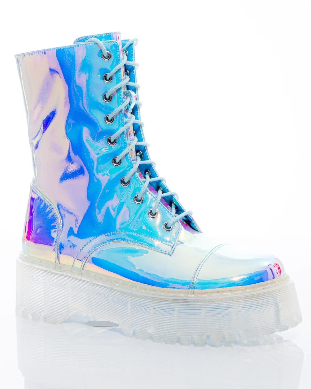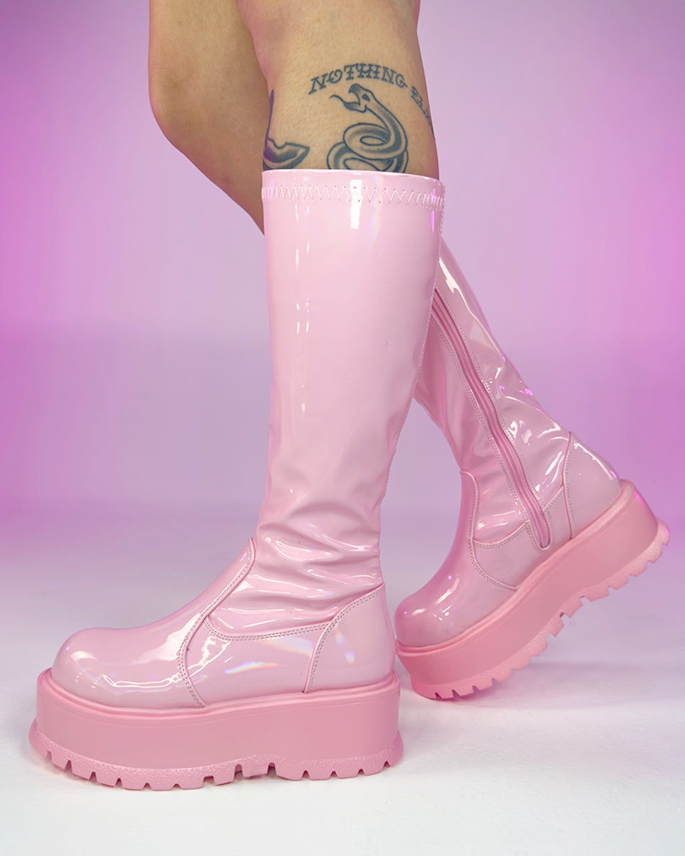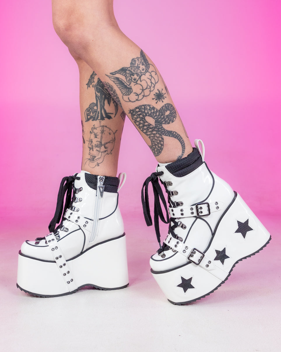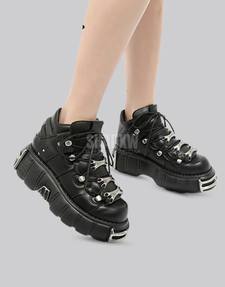 Demonia Shaker Black Lace-Up Mid-Calf Platform Boot
