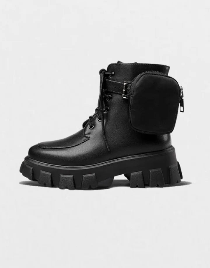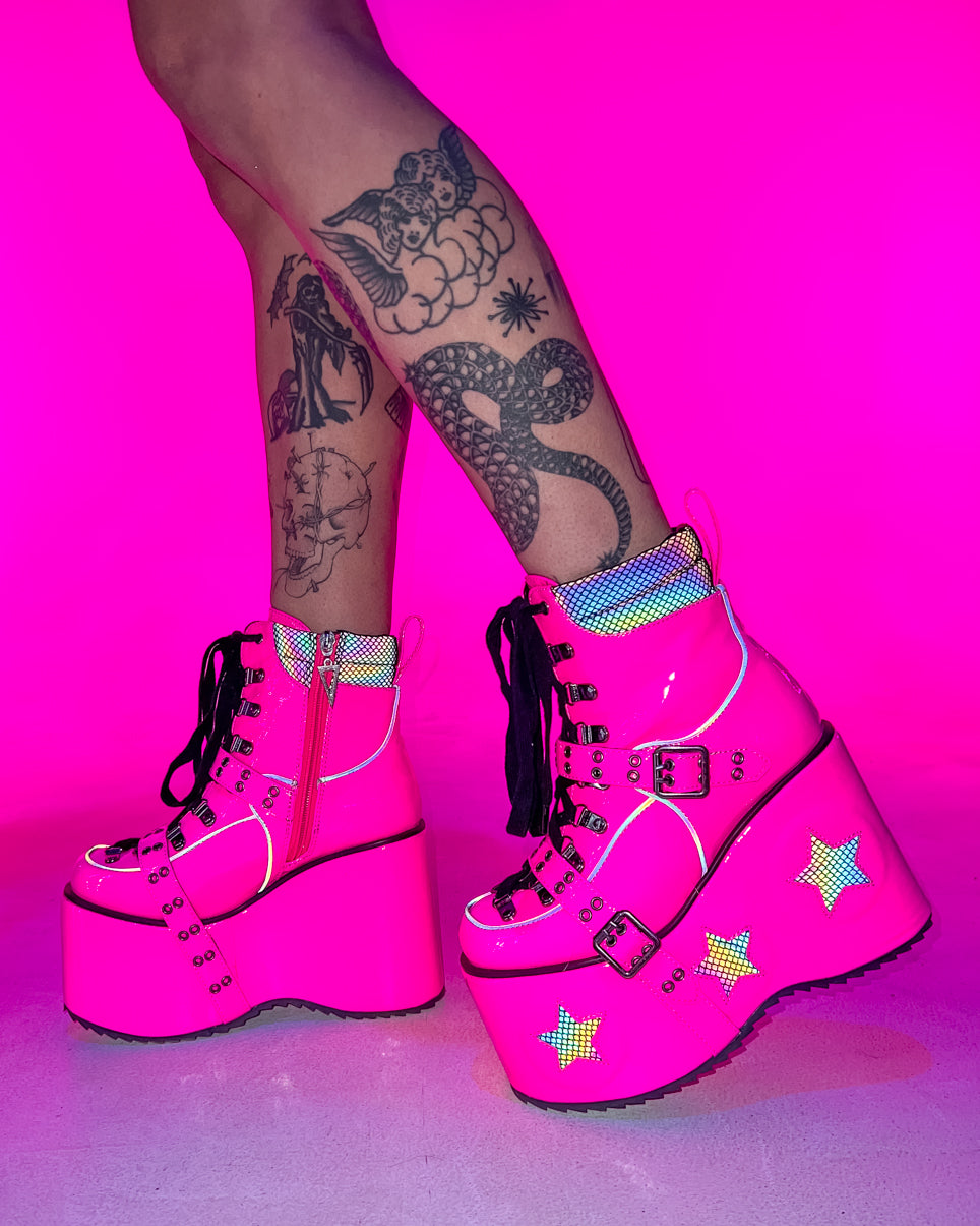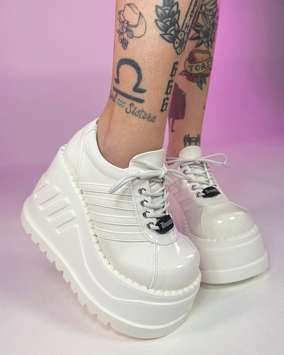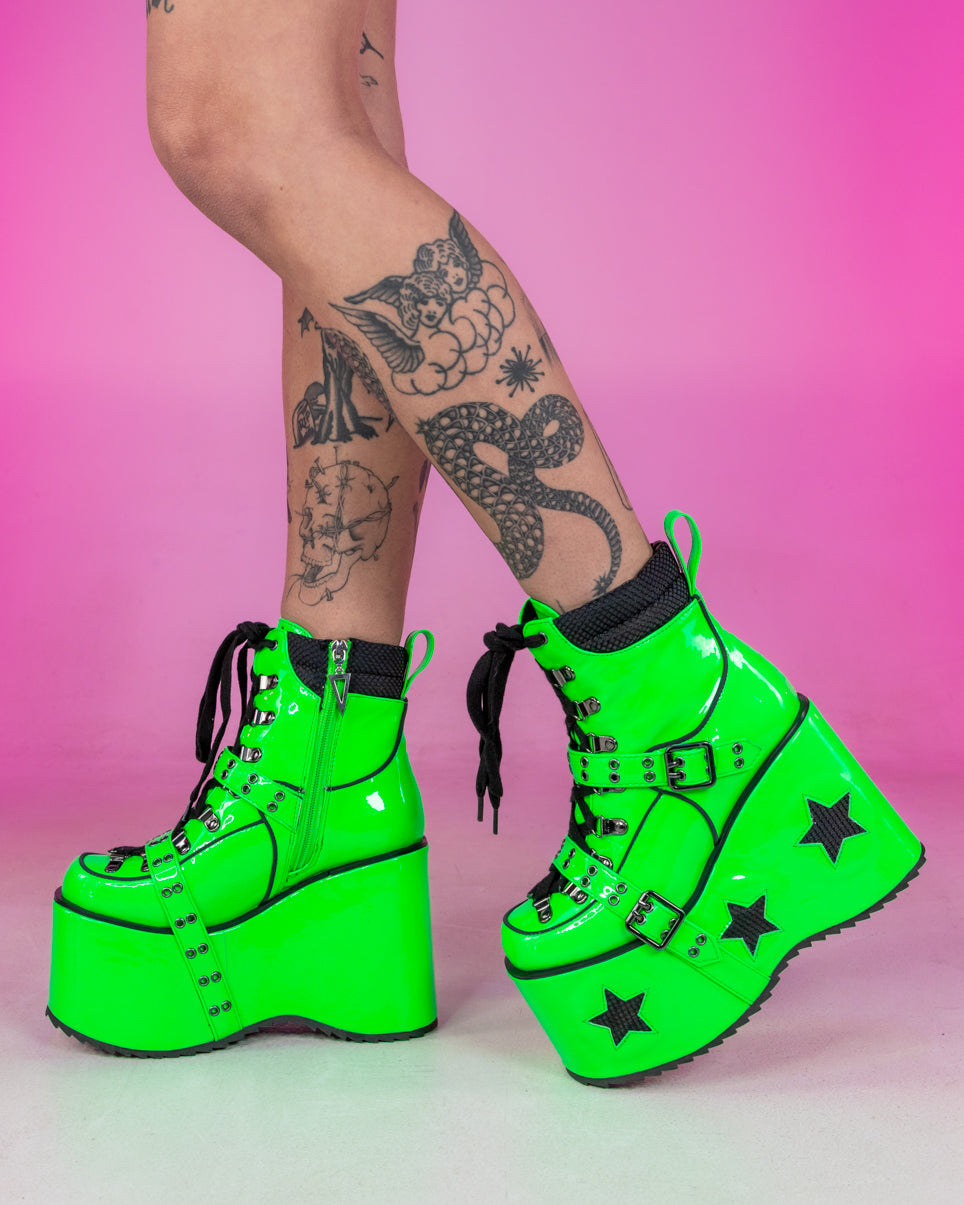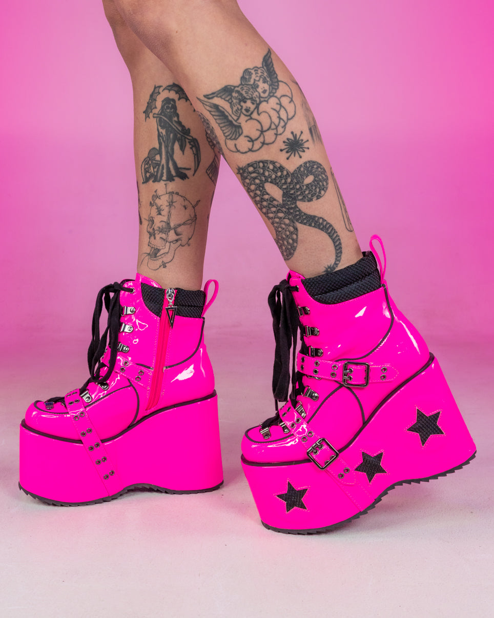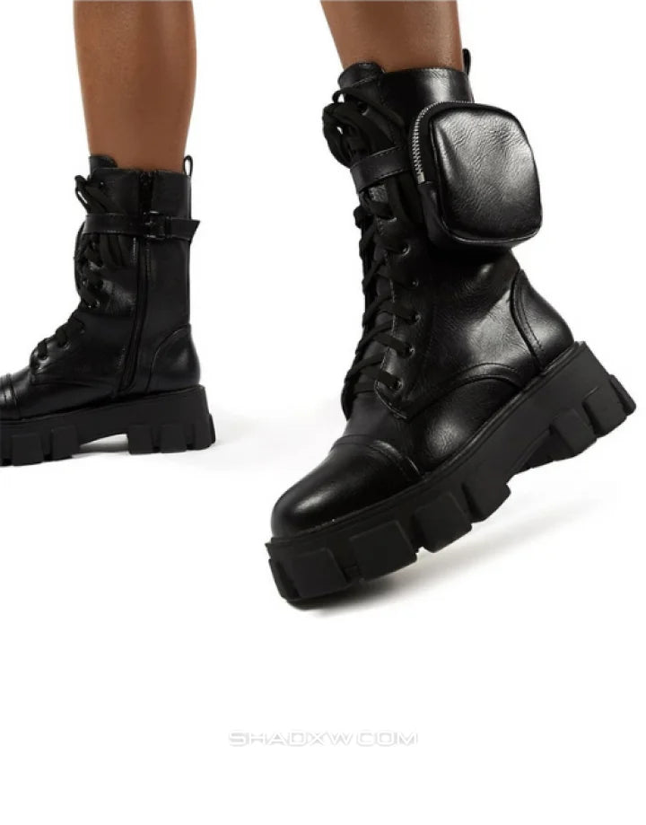 Demonia Shaker Black Lace-Up Mid-Calf Platform Boot