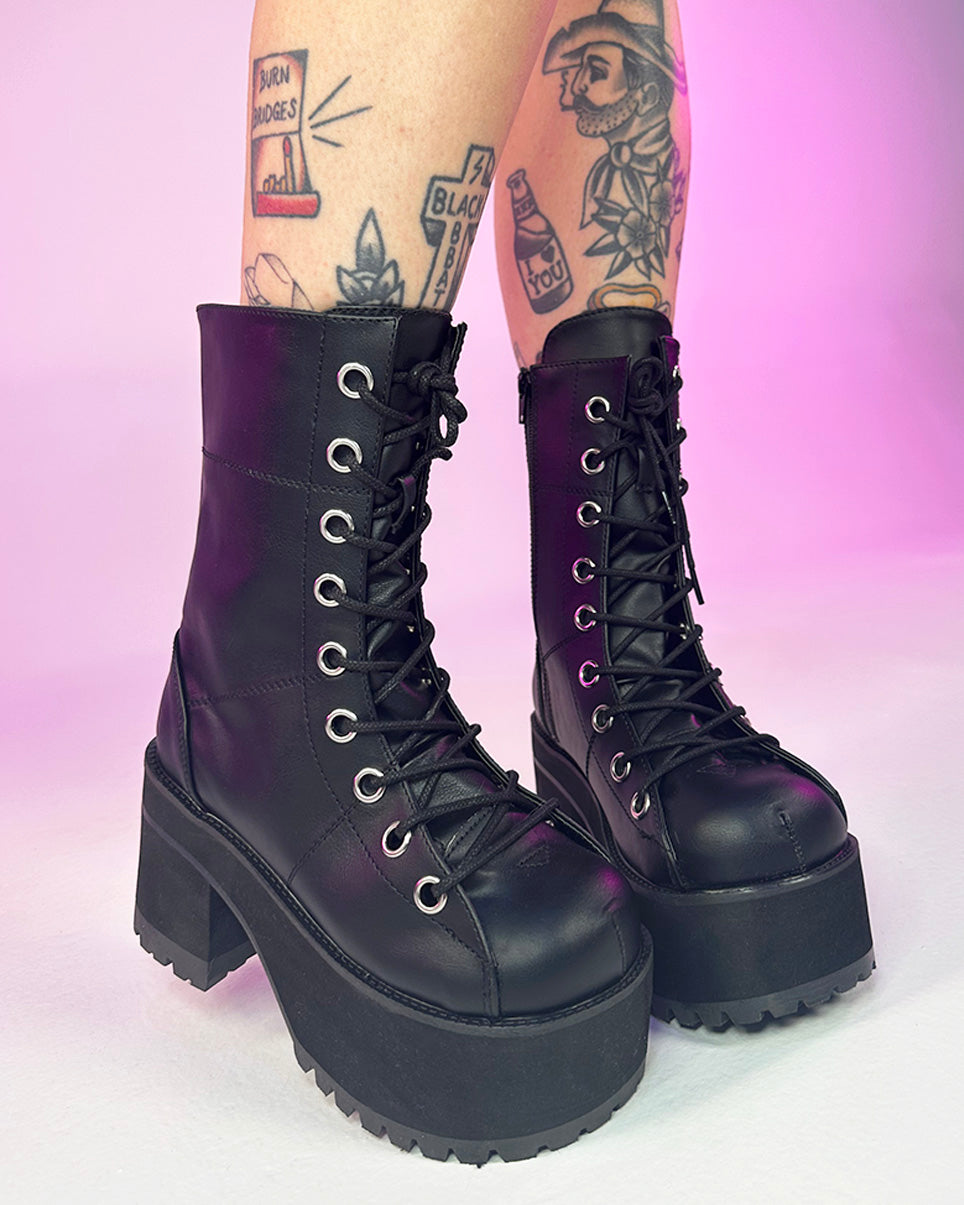 Demonia Ashes Black Lace-Up Mid-Calf Platform Boot