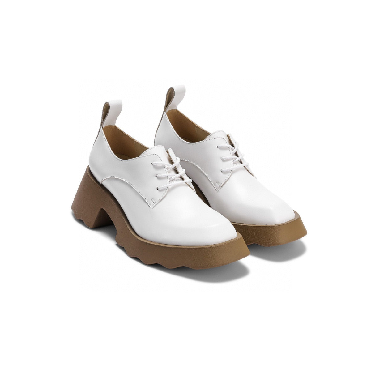 Lost In Echo Square Toe Platform Foam Brogues White
