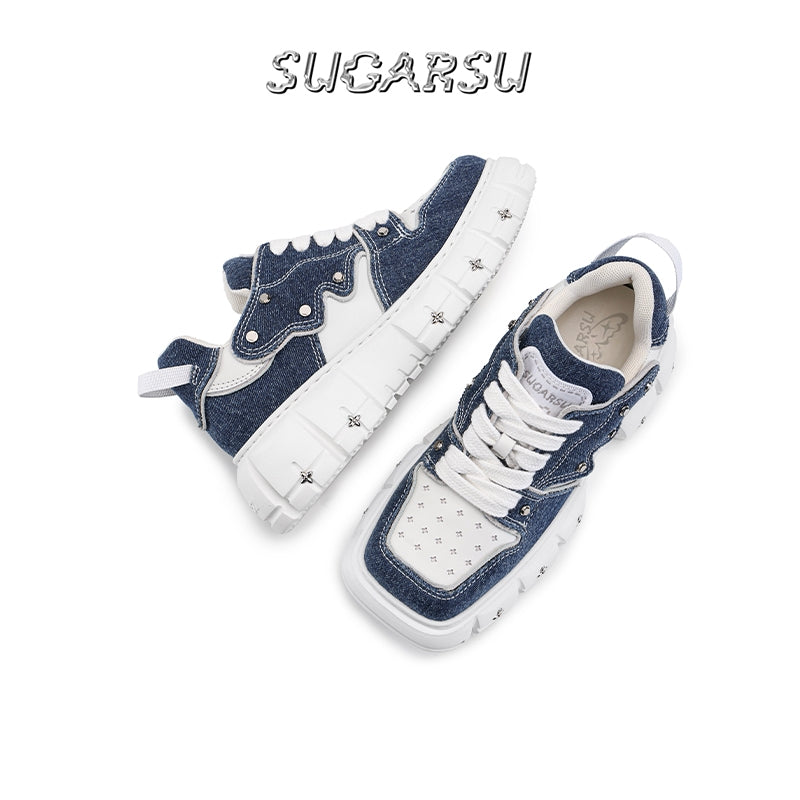 SugarSu Square Toe Stud Sneaker Denim Blue