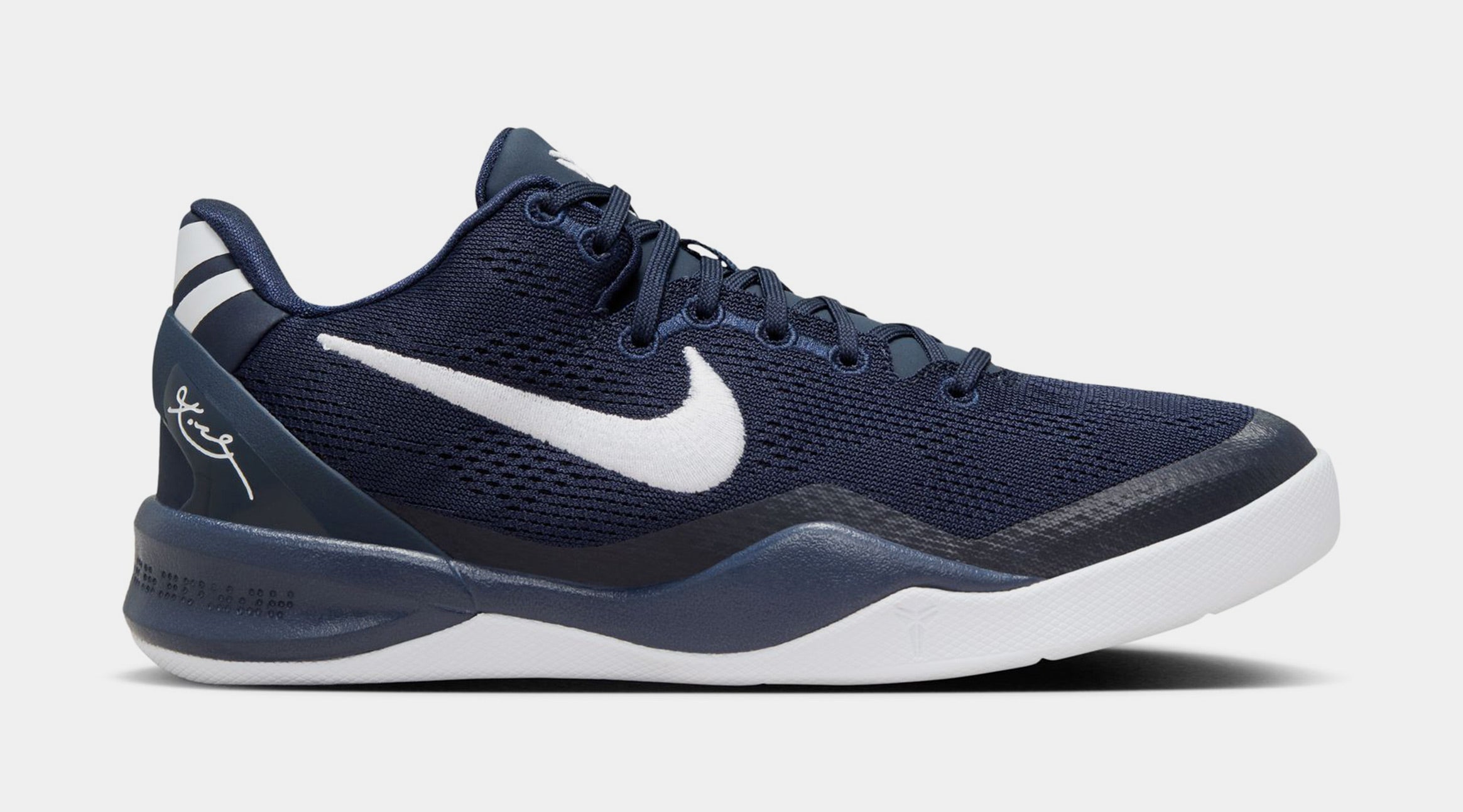 Kobe 8 College Navy Grade School Basketball Shoes (College Navy/White)