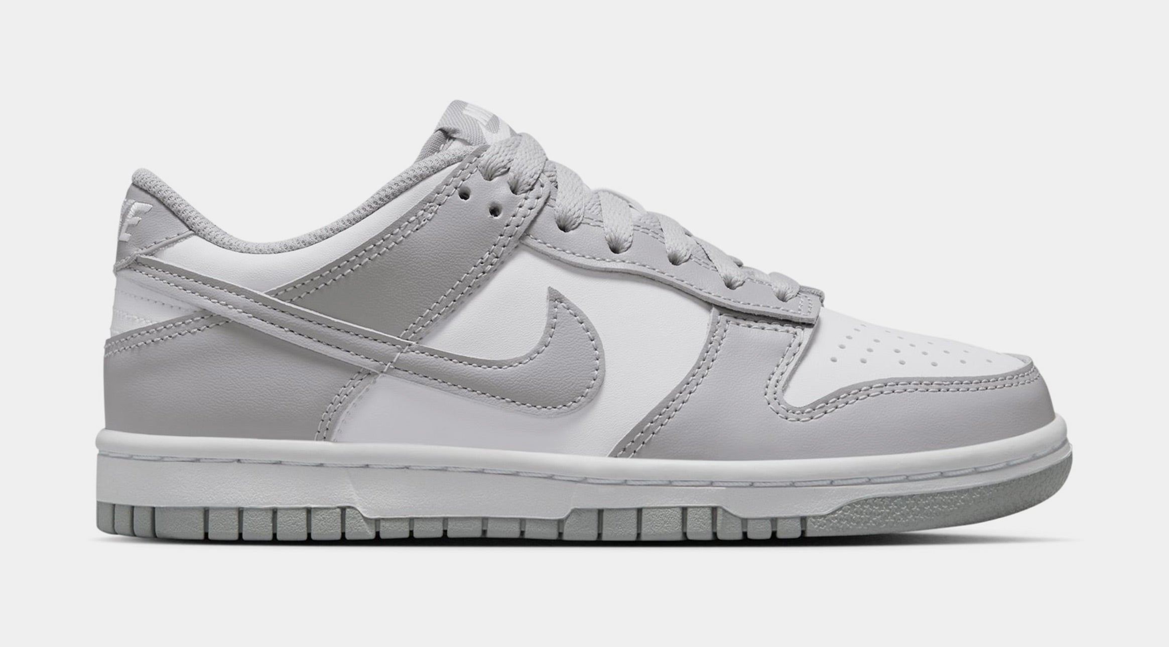 Dunk Low Grade School Basketball Shoes (White/Light Grey/White)