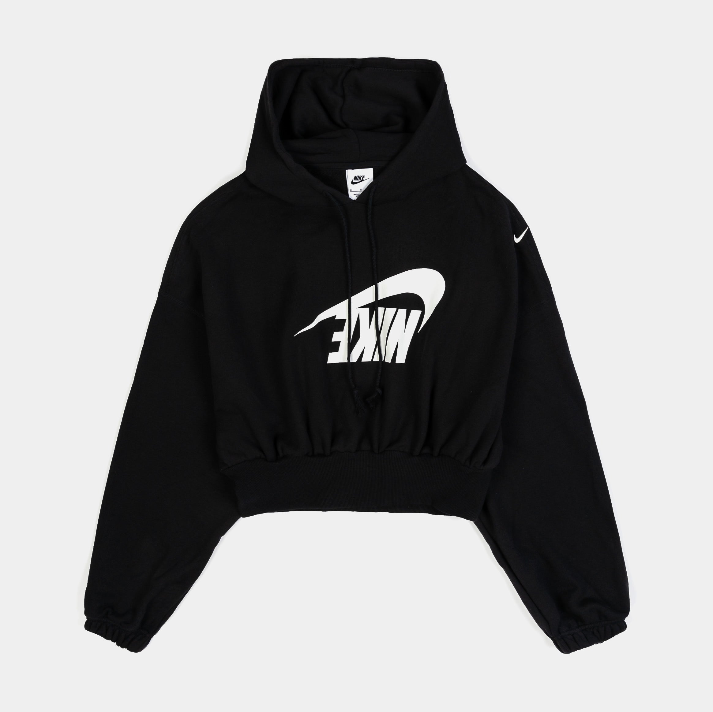 NSW Oversized Cropped French Terry Pullover Womens Hoodie (Black/White)