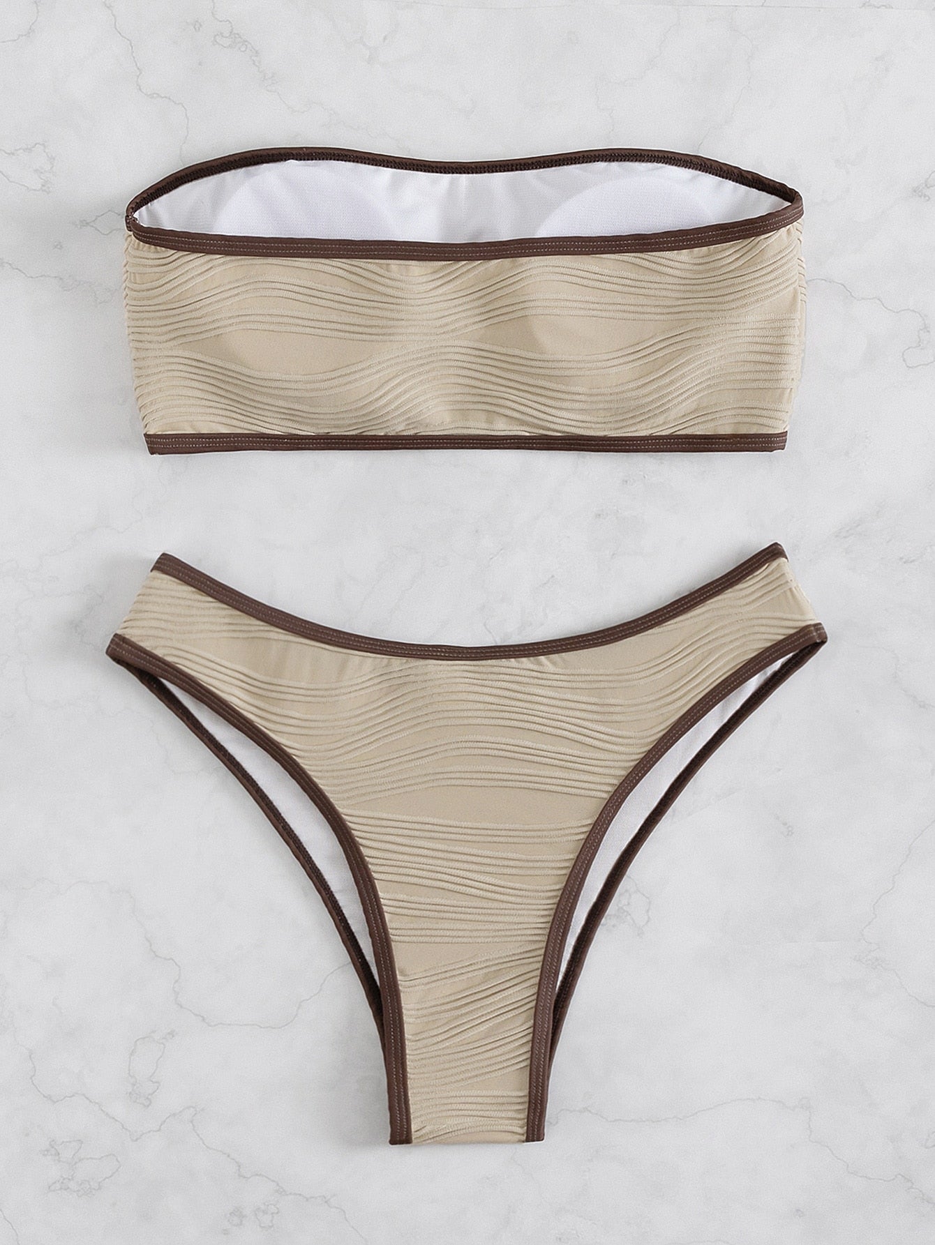 Striped Drawstring Front Bikini Swimsuit