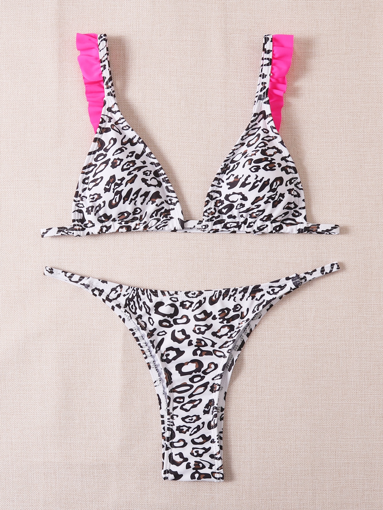 Reversible Bottom Low-waist Bikini Set Women Sexy Leafy Thong Bikini Two Pieces Swimsuits