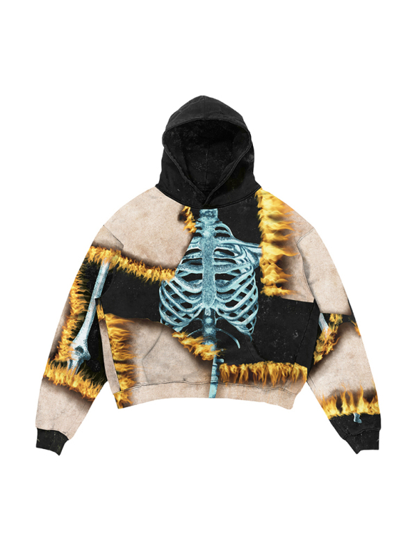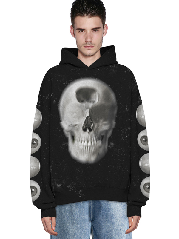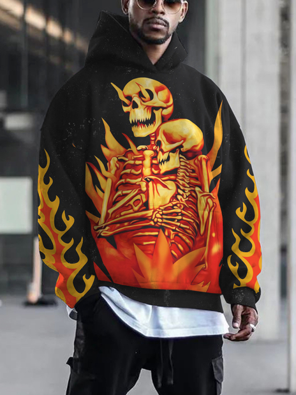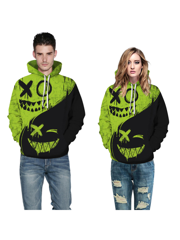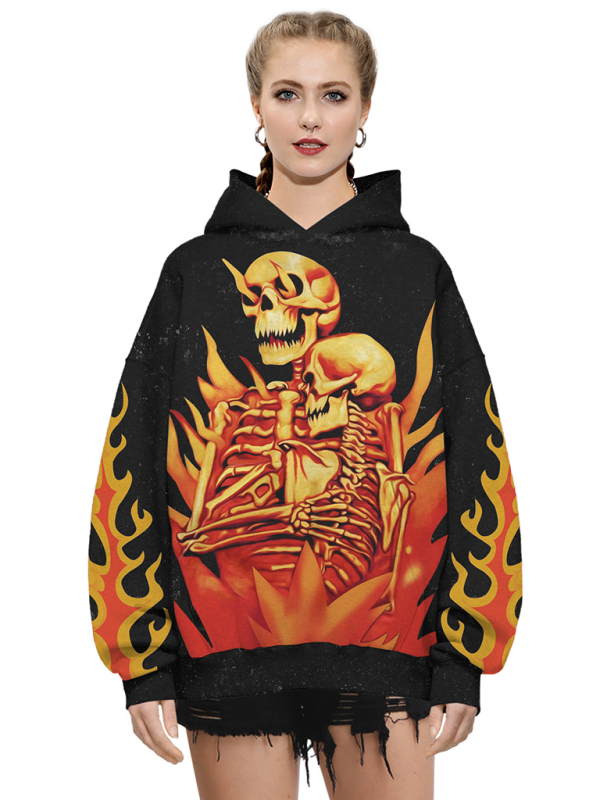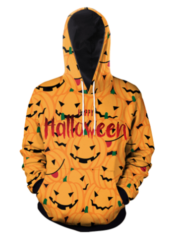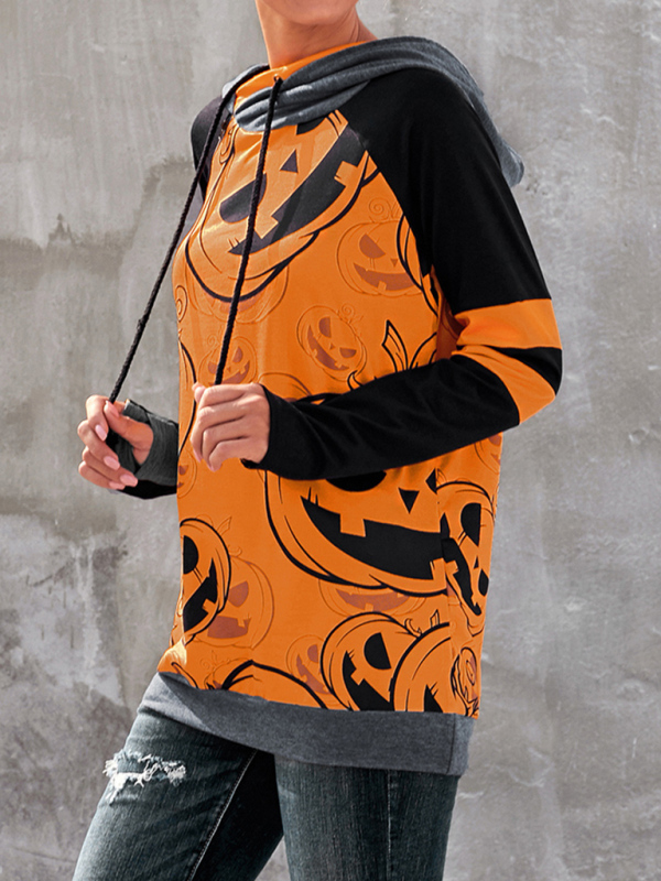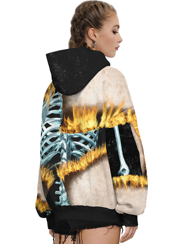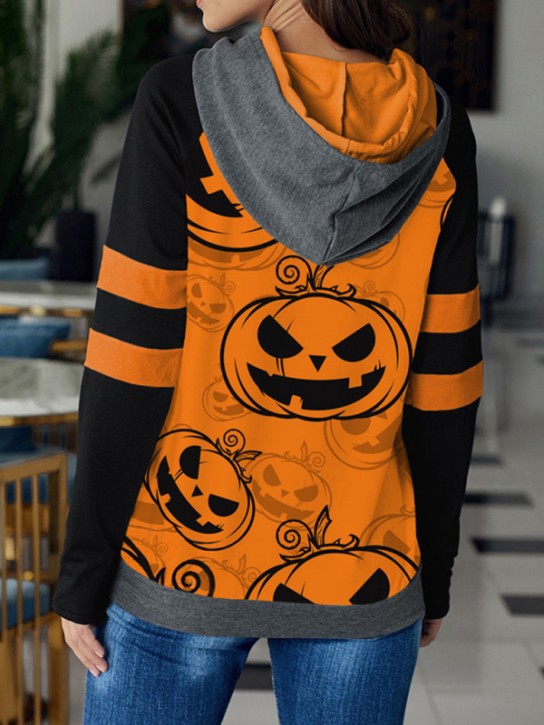 Halloween Digital Print Hooded Long Sleeve Loose Pullover Sweatshirt