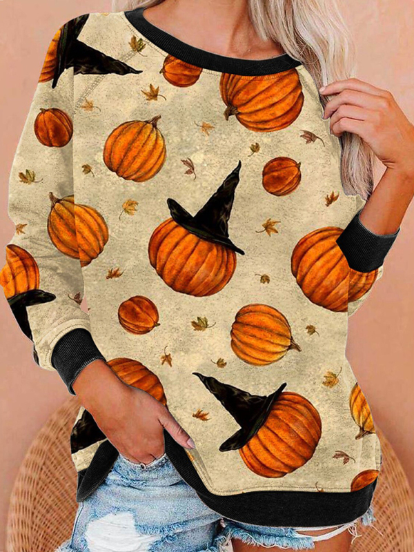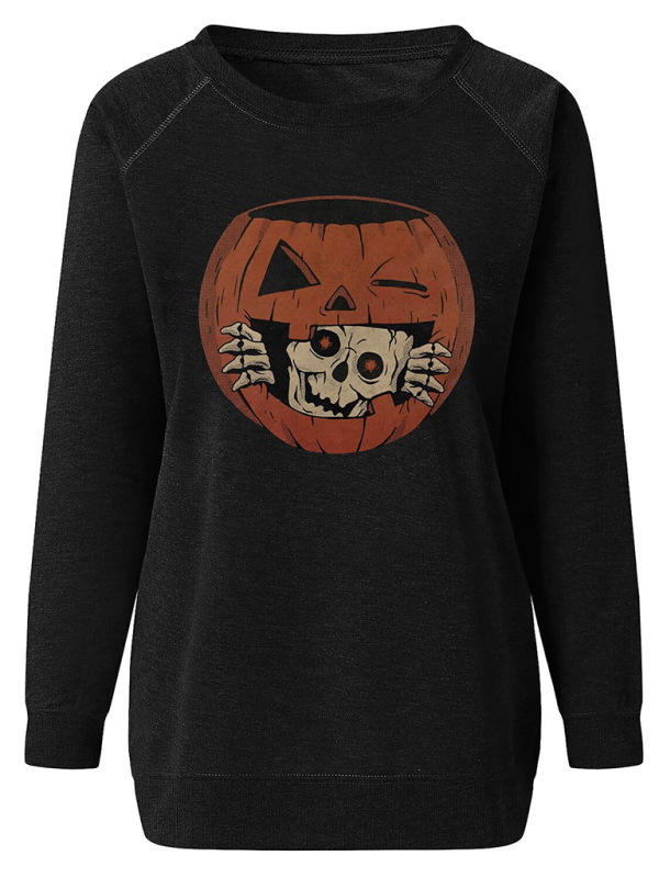 Women's Halloween Print Contrast Raglan Sleeve Top