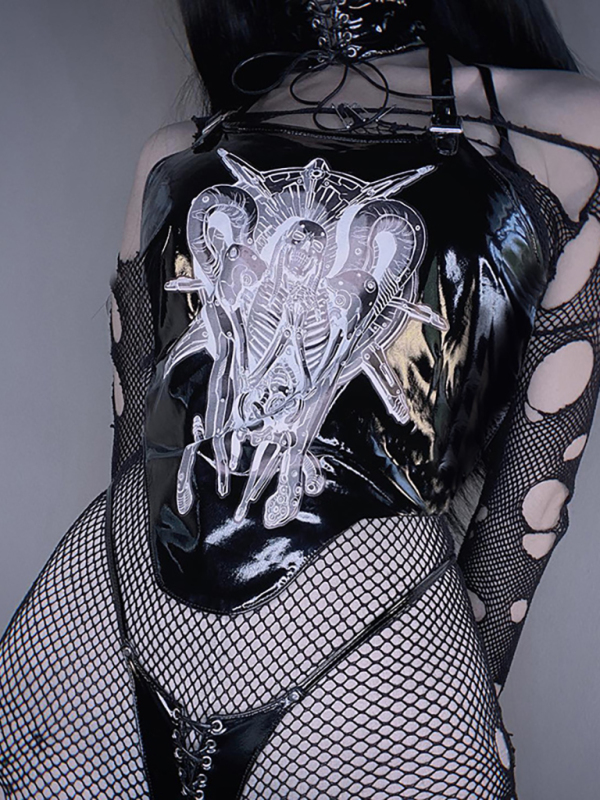 2022 New Women'S Halloween Tops Dark Leather Halter Tube Top Sling