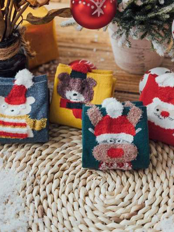 Cotton Tube Socks Stereo Ear Christmas Socks (4 Pairs Of Loading)
