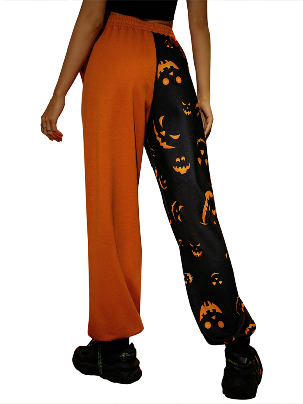 Women's Halloween casual patchwork print shows the trend of thin pants