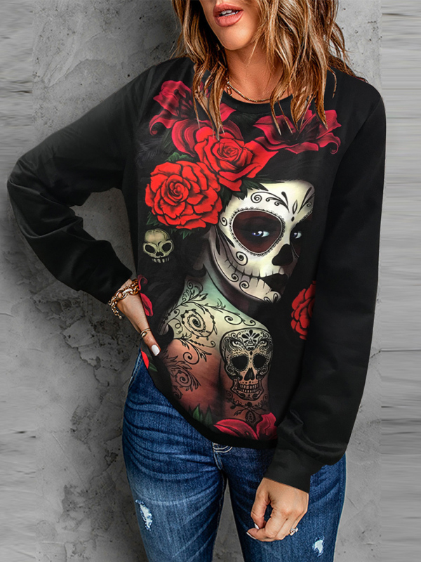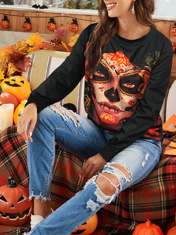 Women's Halloween casual loose long-sleeved top T-shirt