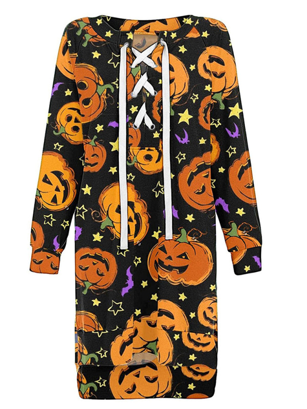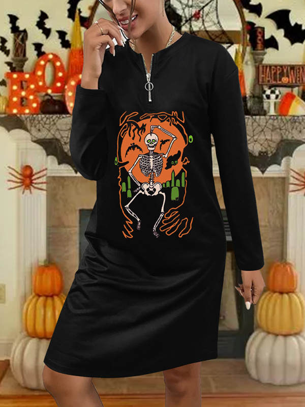 Halloween women's casual long-sleeved dresses