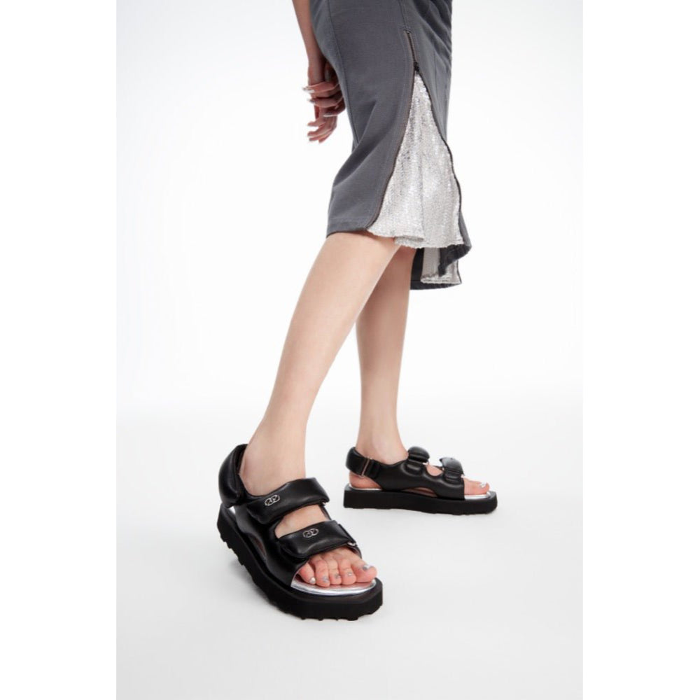 Lost In Echo Faceted Padded Double-Strap Sandal Black
