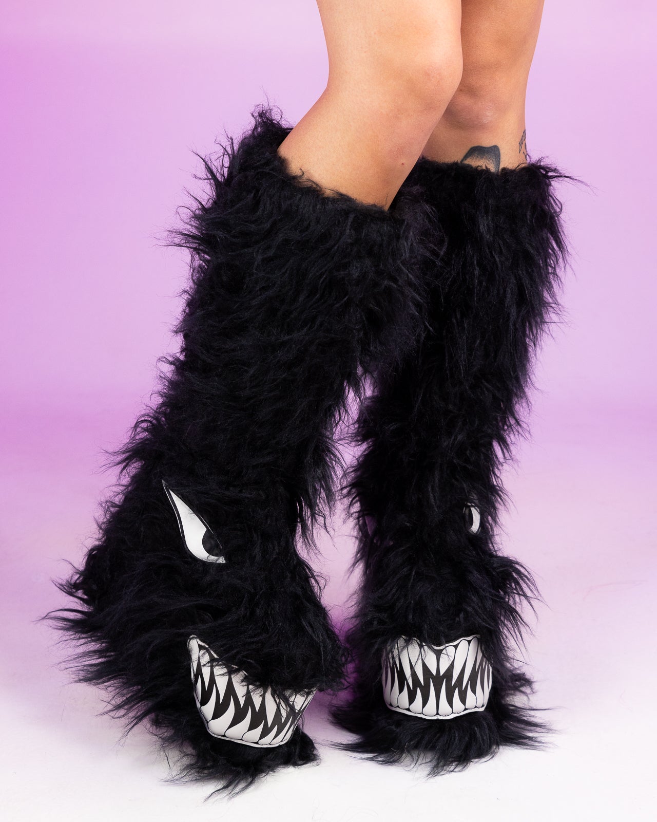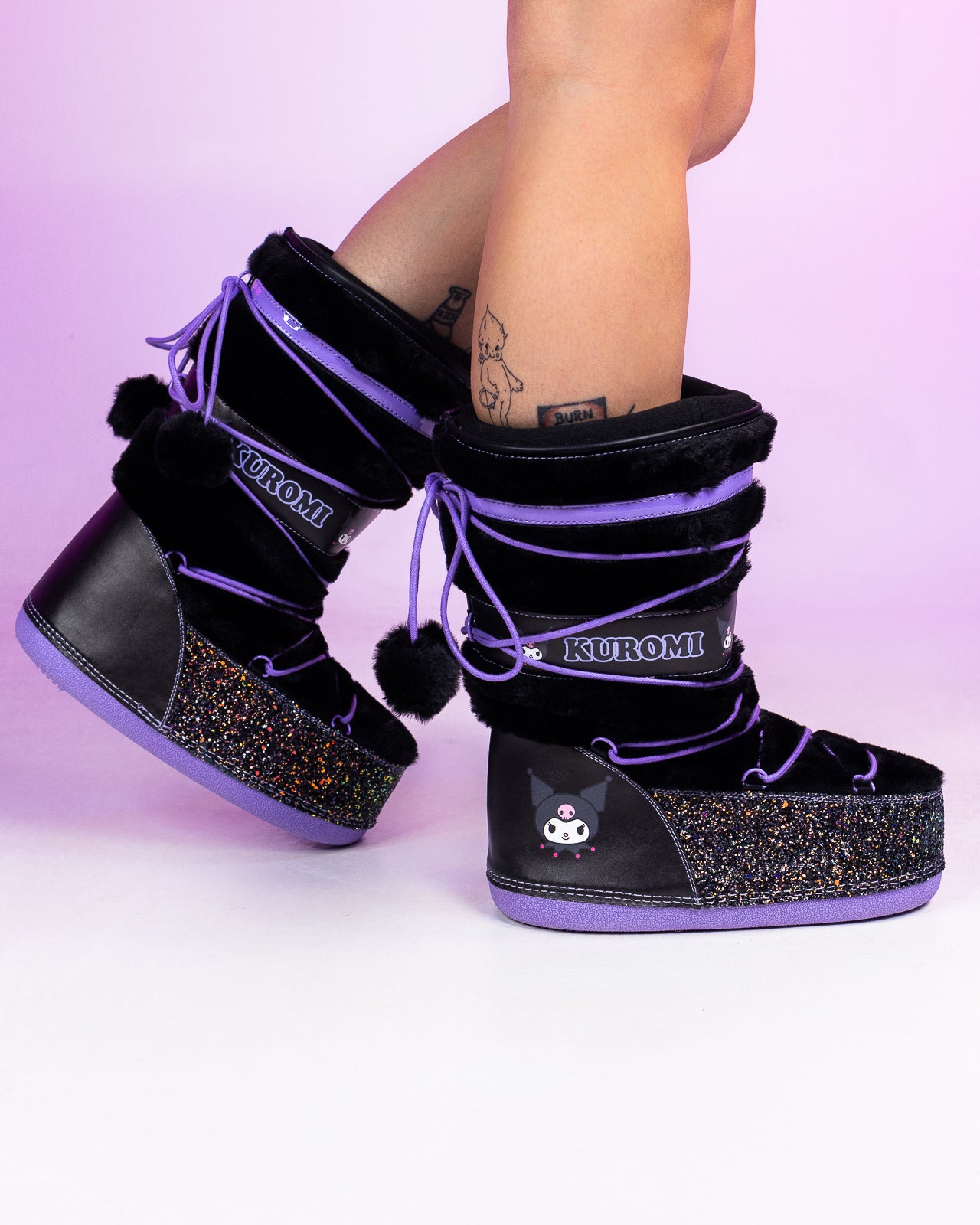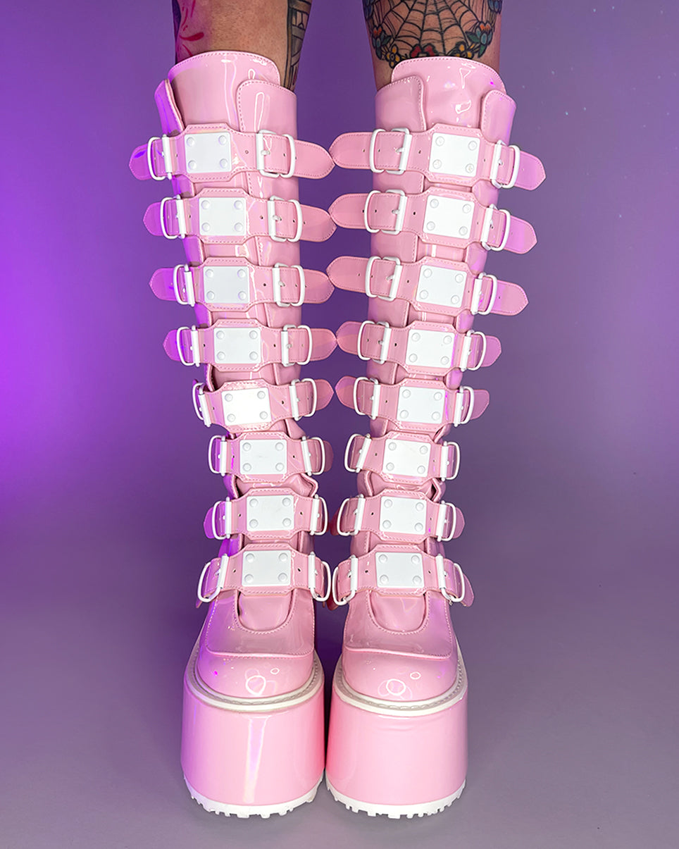 Demonia Swing Pink Holo Chain Knee-High Boots