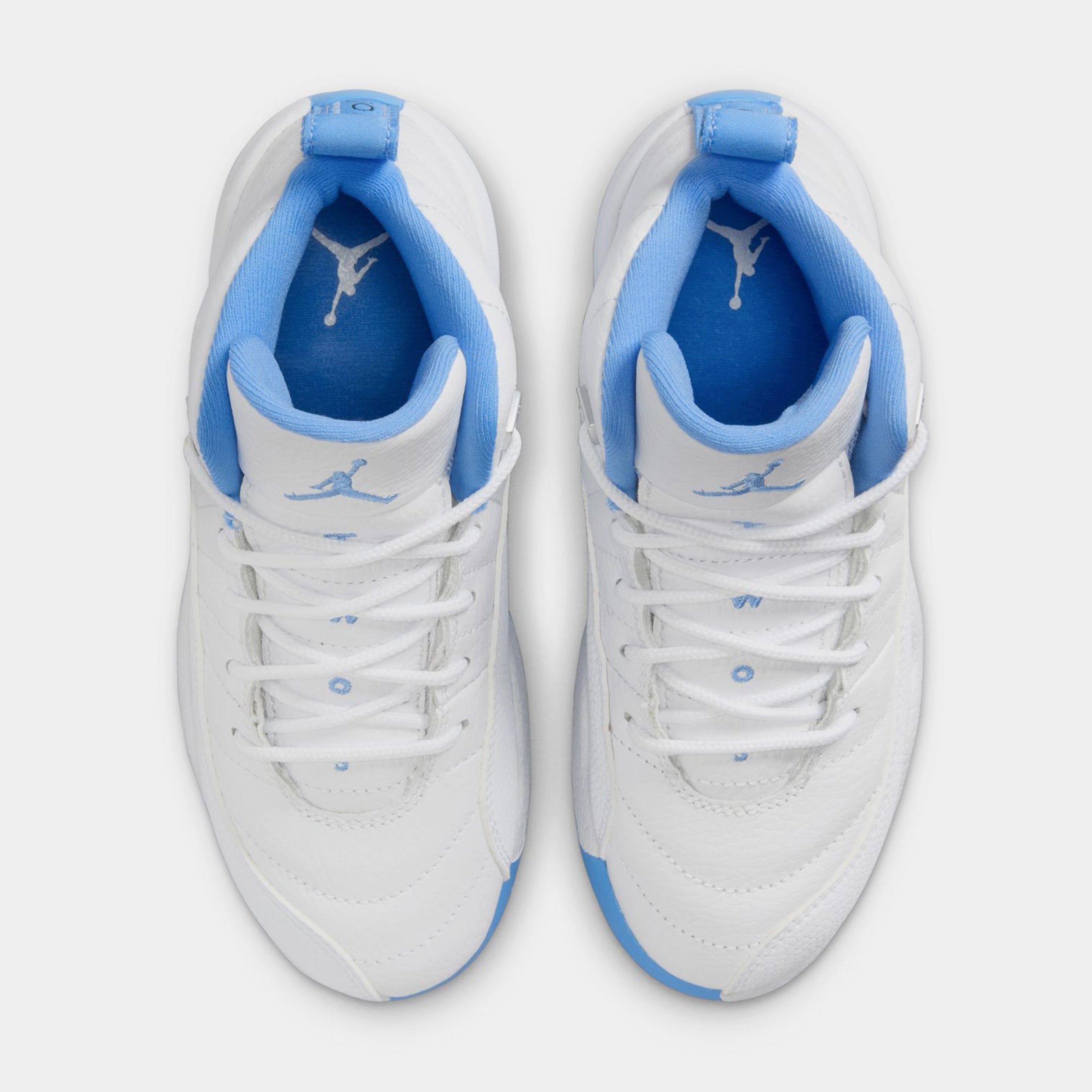 Air Jordan 12 Retro White and University Blue Preschool Lifestyle Shoes (White/University Blue/Metallic Silver) Free Shipping