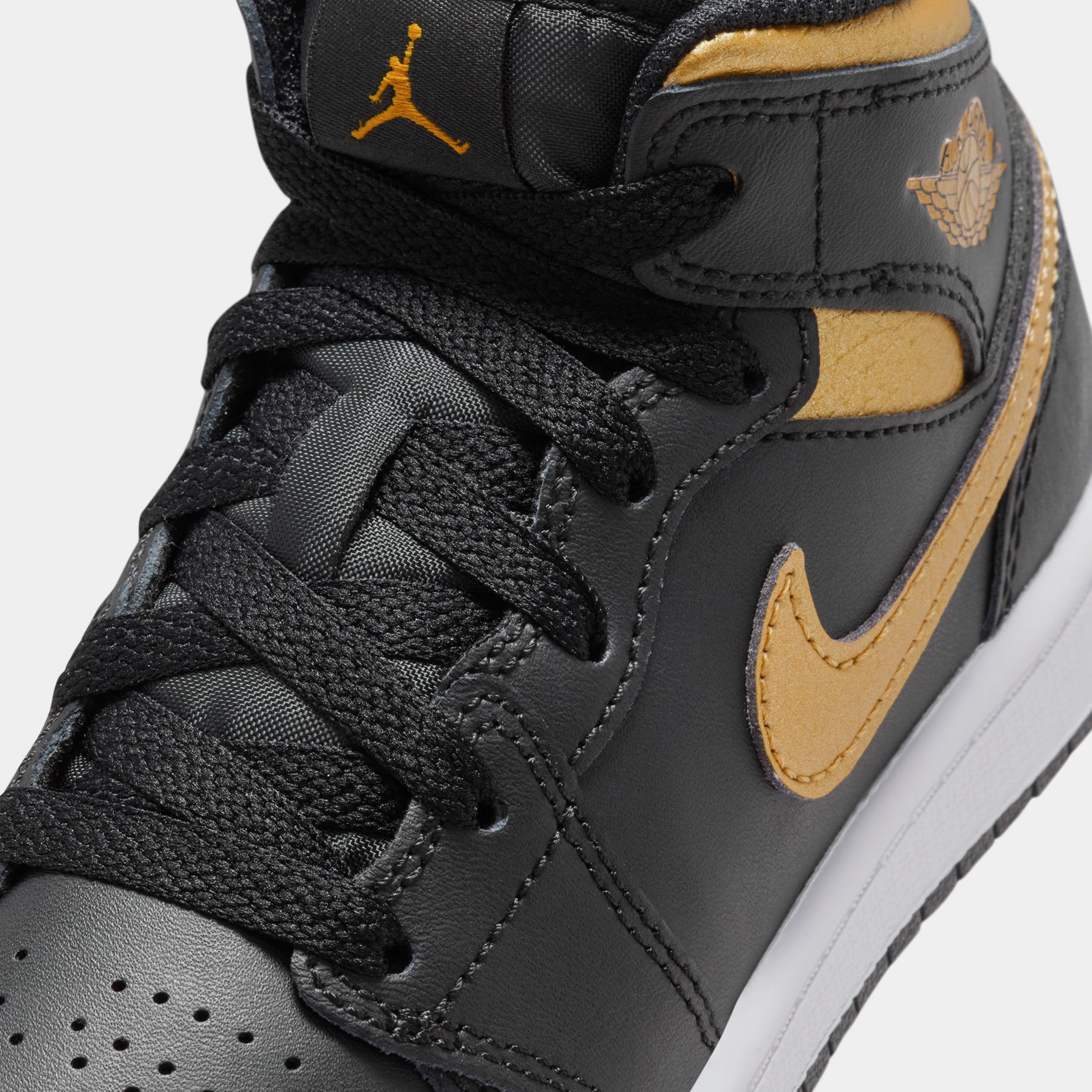 Air Jordan 1 Mid Metallic Gold Preschool Lifestyle Shoes (Black/Metallic Gold/White)