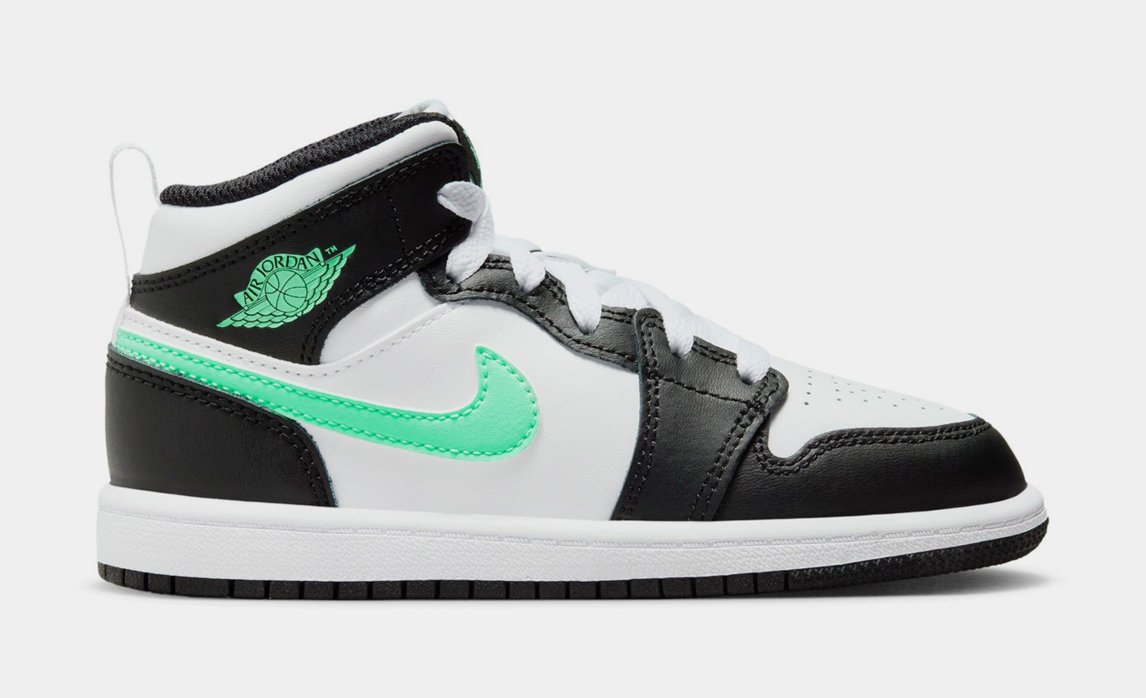Air Jordan 1 Mid Preschool Lifestyle Shoes (White/Green Glow/Black)