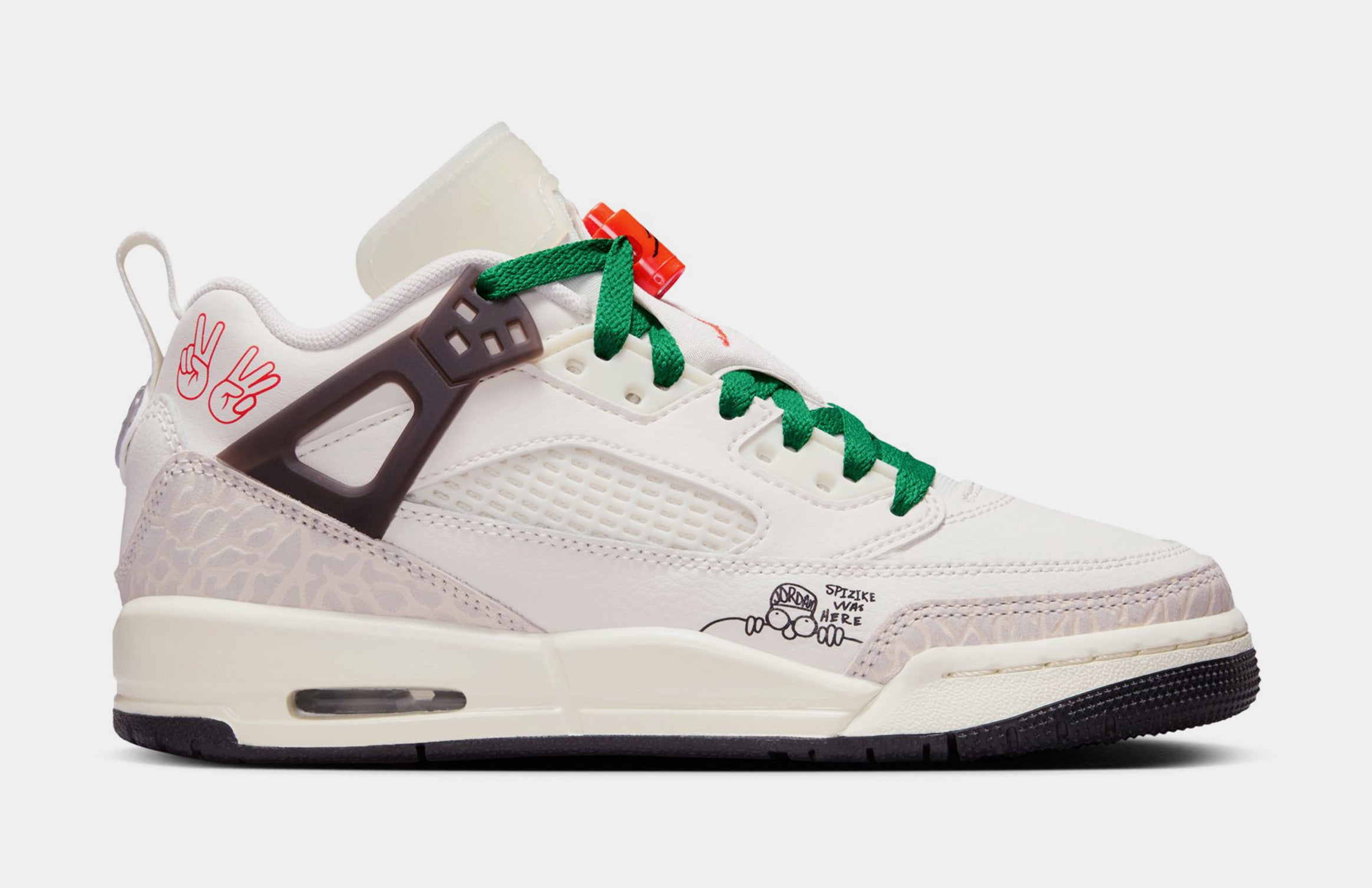 Spizike Low Grade School Basketball Shoes (Beige/Green)