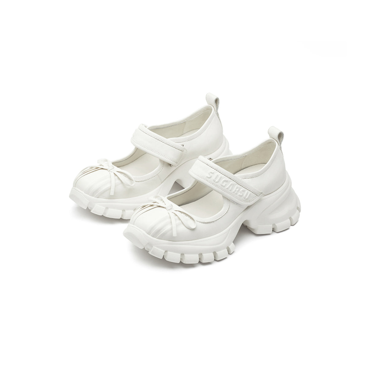 SugarSu Butterfly Leather Ballet Mary Jane White