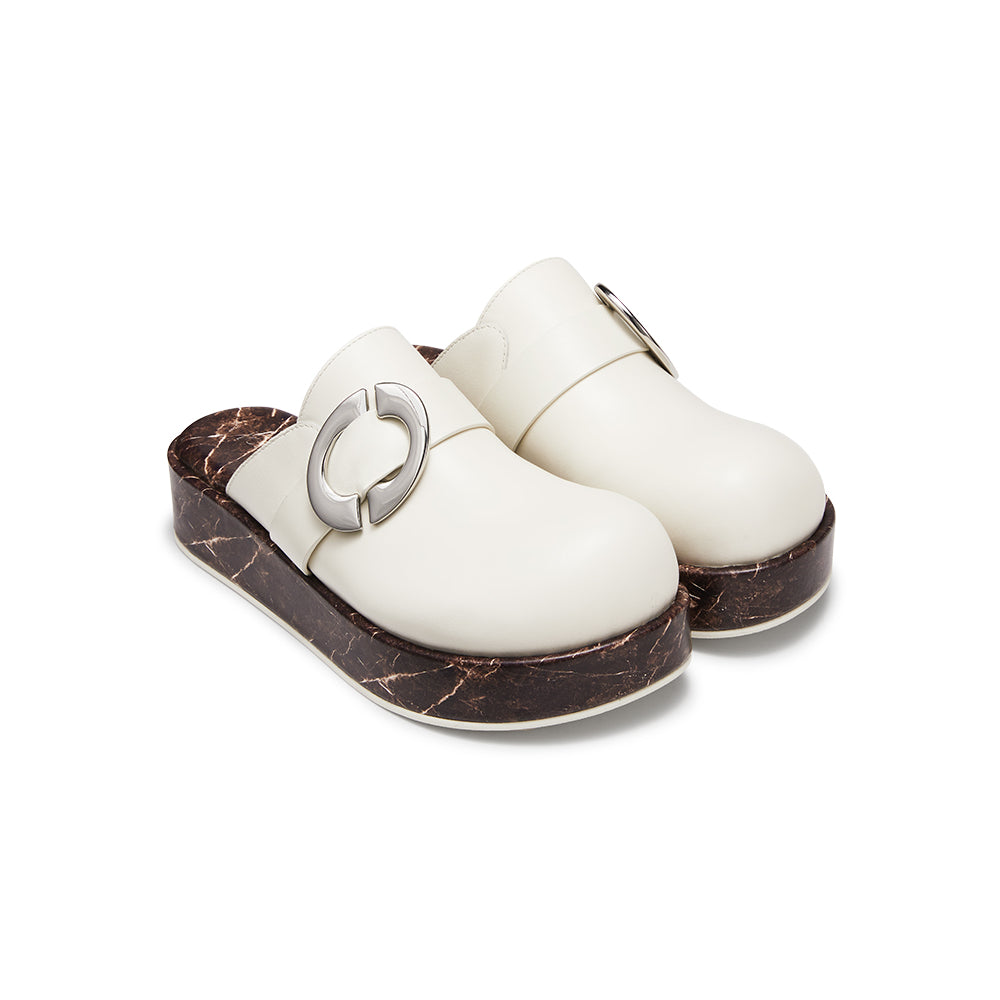 Lost In Echo Round Toe Thick Sole Mule Slipper White