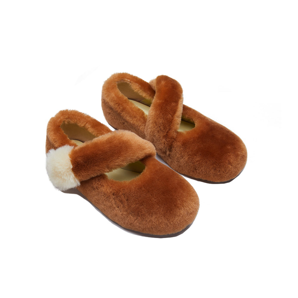 HALFAWAKE Wool Stripe Flat Fur Slip On Brown